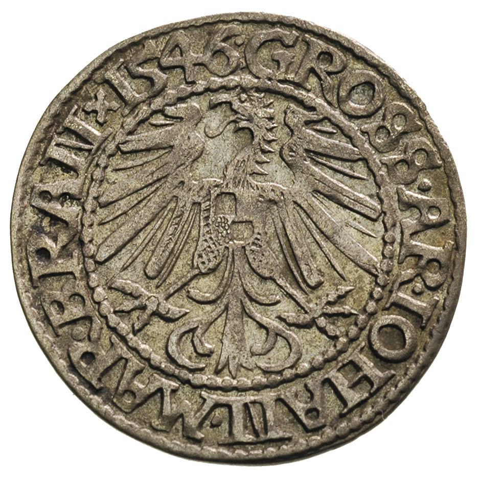Jan Kostrzyński 1535-1571, grosz 1546, Krosno, F.u.S. 1993, ciemna patyna