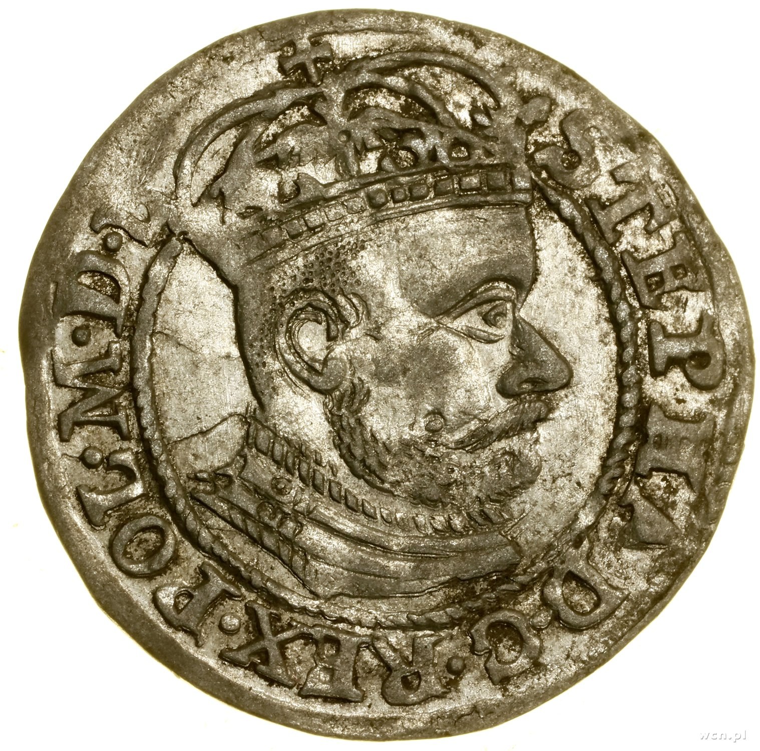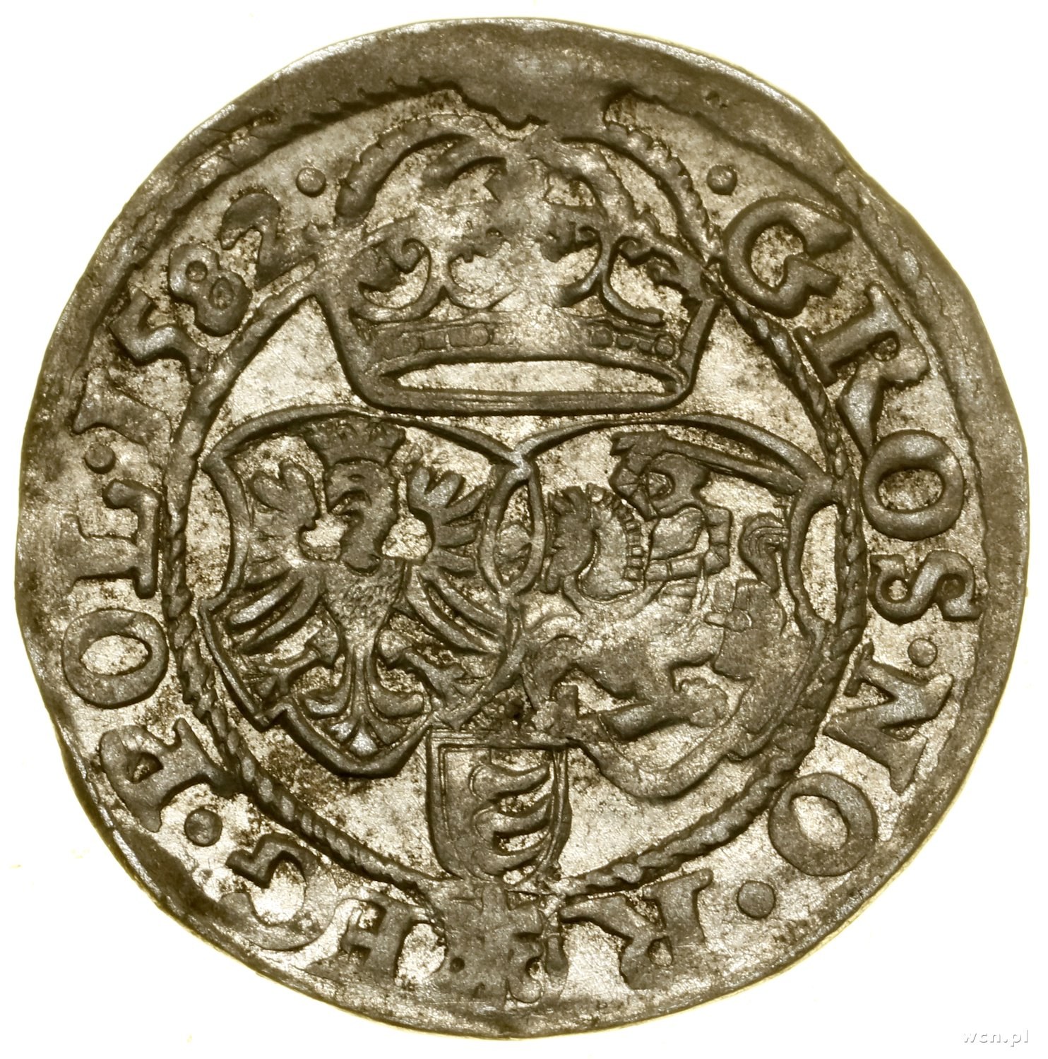 Grosz, 1582, Olkusz; Aw: Głowa króla w prawo, w koronie...