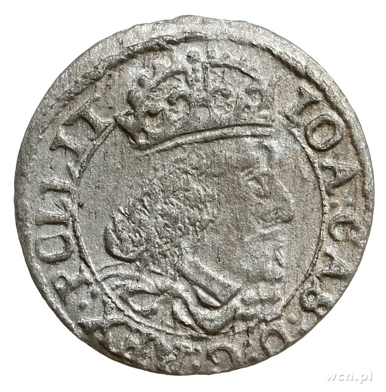 monety litewskie, grosz 1652, Wilno; odmiana z rzymską cyfrą I i herbem Gozdawa pod Pogonią; Ivanauskas’09 4JK3-3 (RR), Tyszkiewicz 3 mk; dość ładnie zachowany.