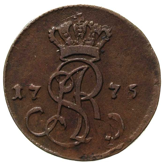 Stanisław August Poniatowski 1764-1795, grosz 1776, Warszawa, wieniec z 6 jagódkami, Plage 112, na awersie cyfra 6 przypomina 5 (\zapchany\" stempel)