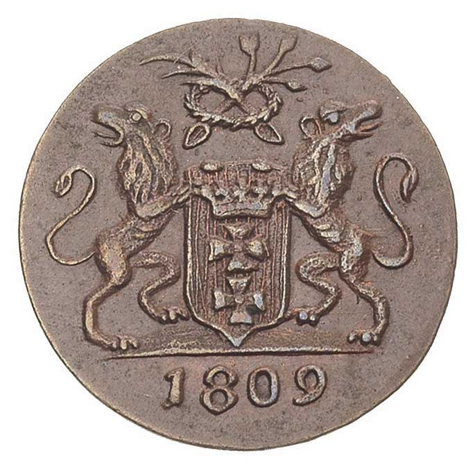 Wolne Miasto Gdańsk, grosz 1809, Gdańsk, Plage 48, ładnie zachowany, patyna