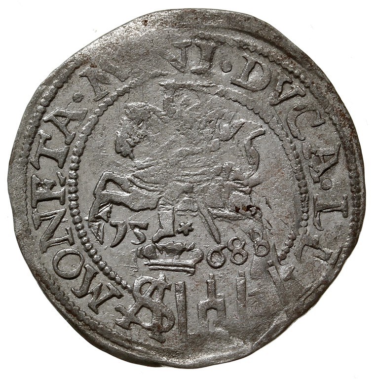 Zygmunt II August 1545-1572, grosz na stopę polską 1568, Tykocin, w wyniku dwukrotnego odbicia stempla data 15 - 688, Ivanauskas -