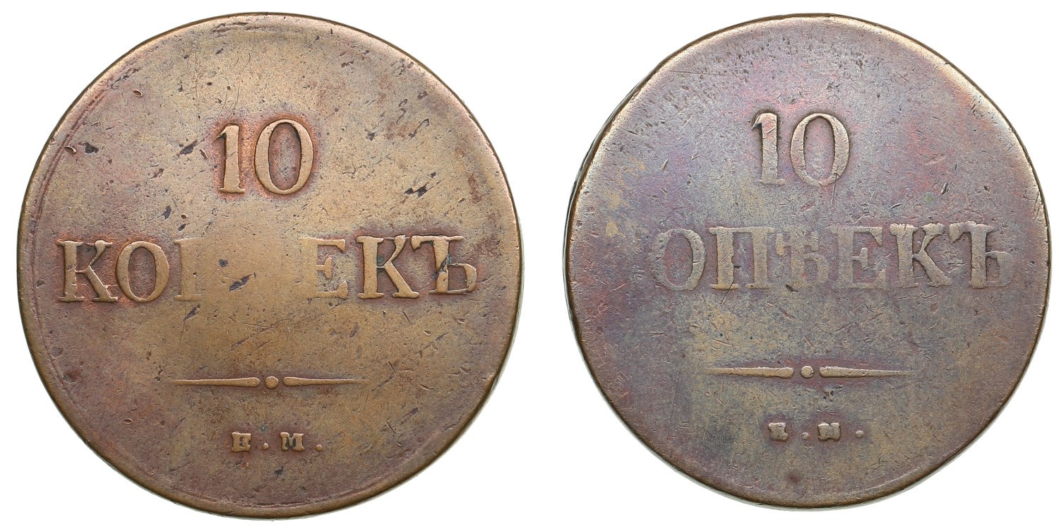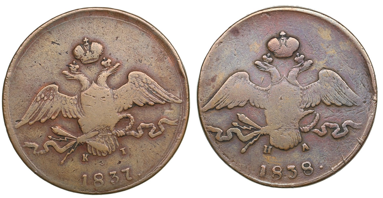 Mixed condition. Sold as-is, no returns. Included: 10 Kopecks 1837 EM-KT, 1838 EM-HA.