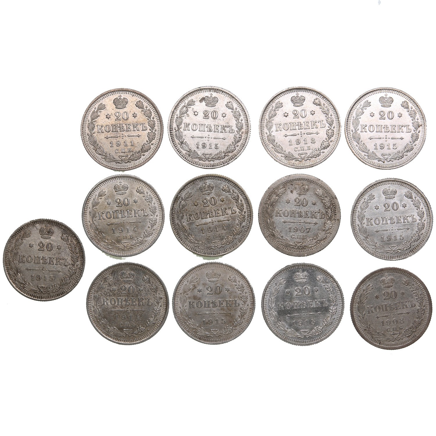 Group of Russian 20 Kopecks (13) - Nicholas II (1894-1917)