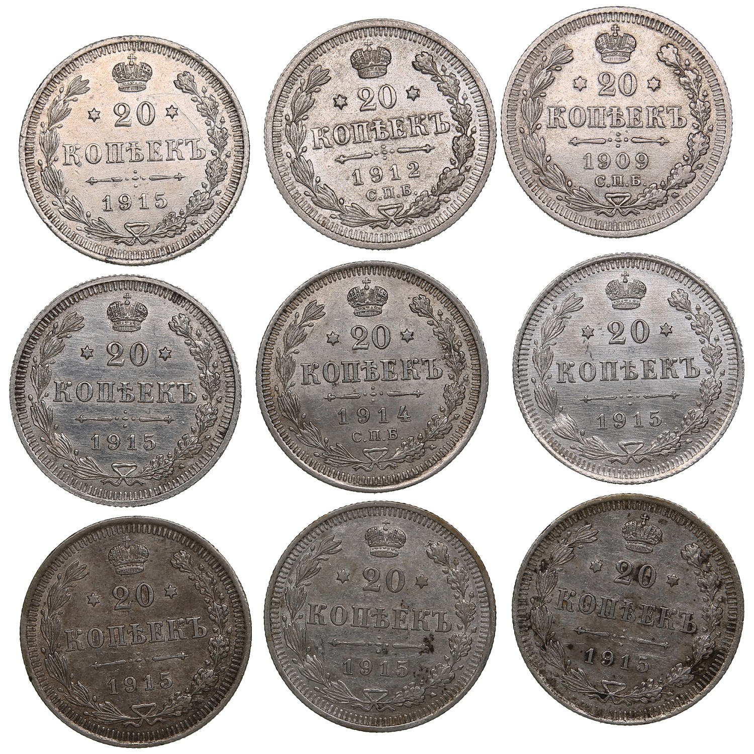 Group of Russian 20 Kopecks (9) - Nicholas II (1894-1917)