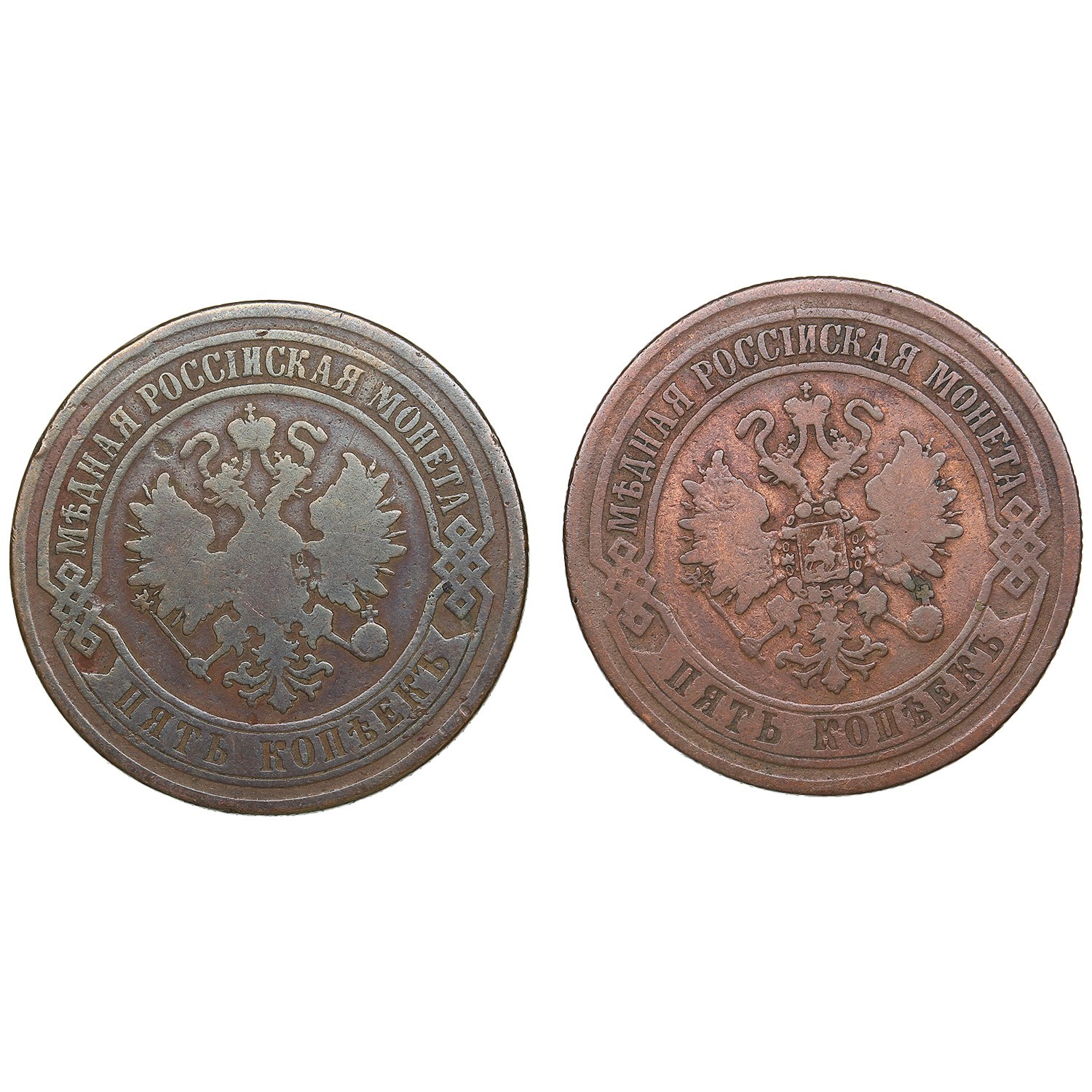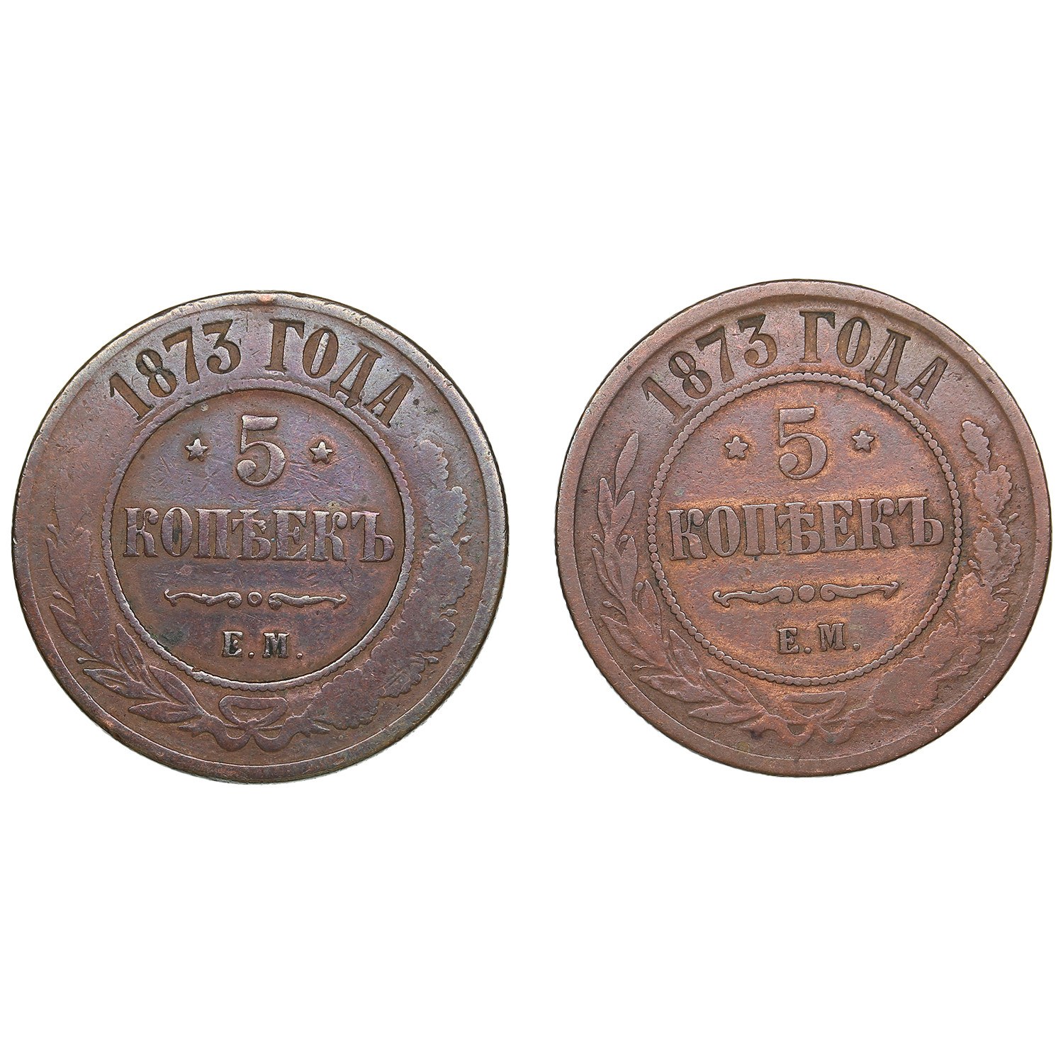 Group of Russian 5 Kopecks 1873 EM (2) - Alexander II (1855-1881)