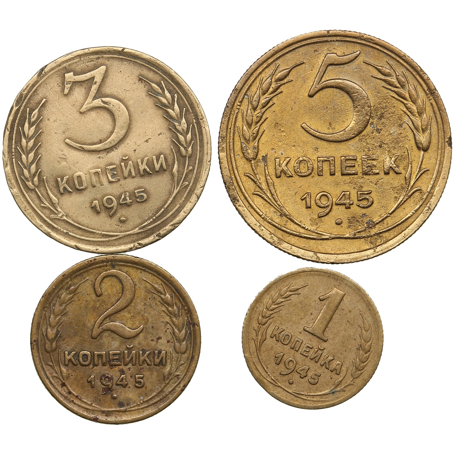 Group of Russian (USSR) 5, 3, 2, 1 Kopecks 1945 (4)