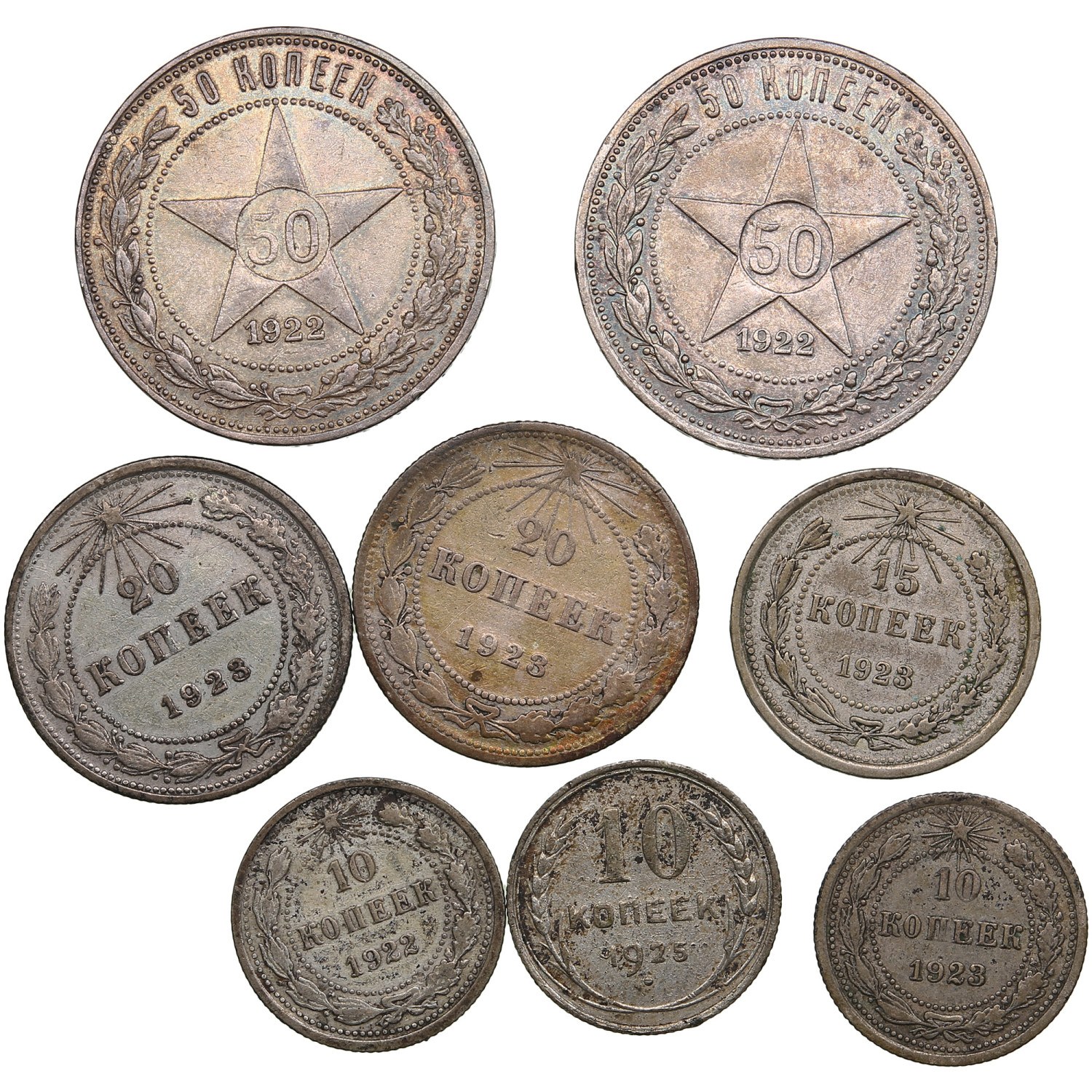 Group of Russian (USSR, RSFSR) 50, 20, 15, 10 Kopecks (8)