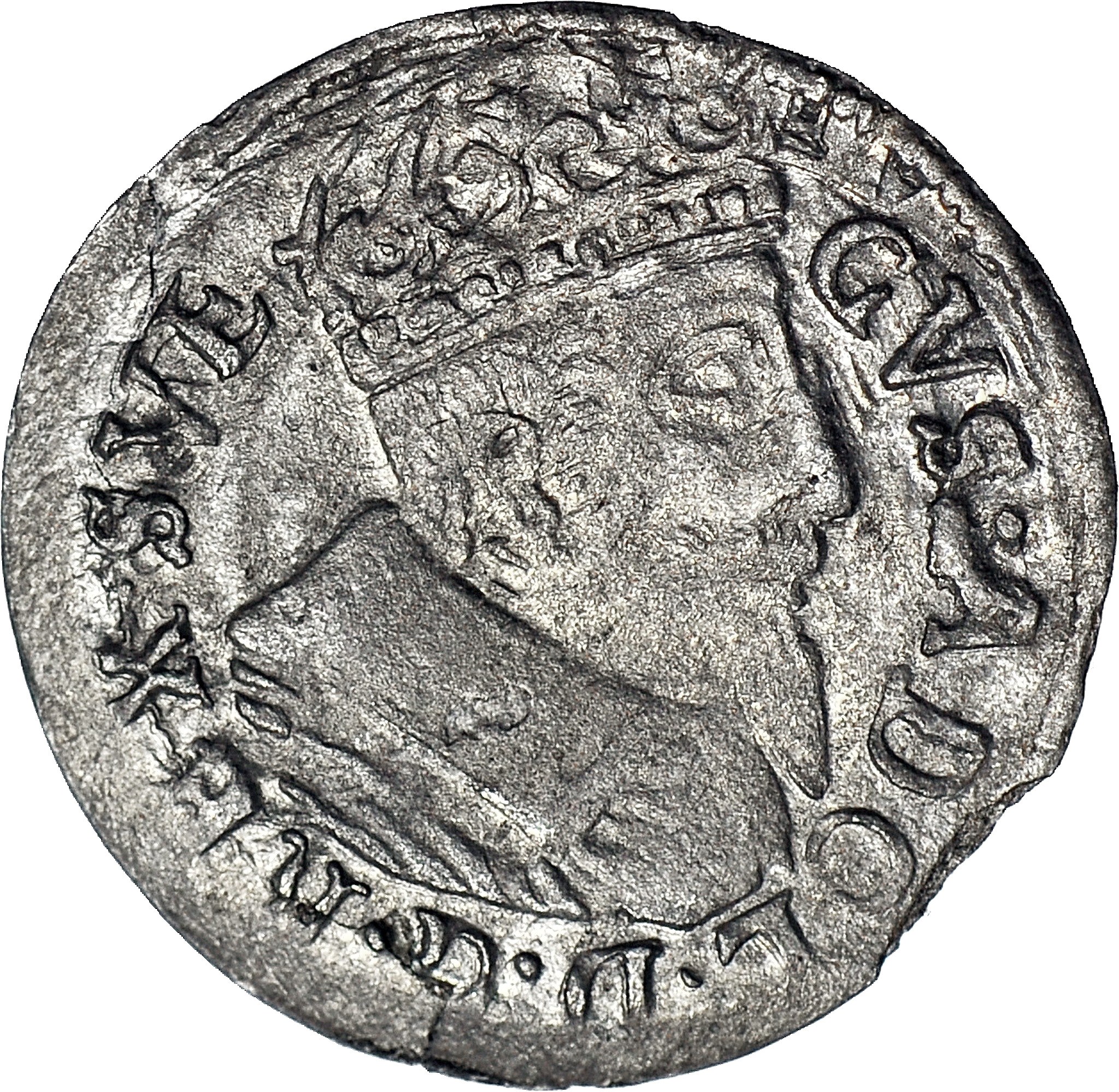 Grosz z czasów okupacji szwedzkiej Elbląga przez Gustawa Adolfa. Ładnie zachowany jak na tę półfałszerską emisję bitą w pośpiechu i niedbale.