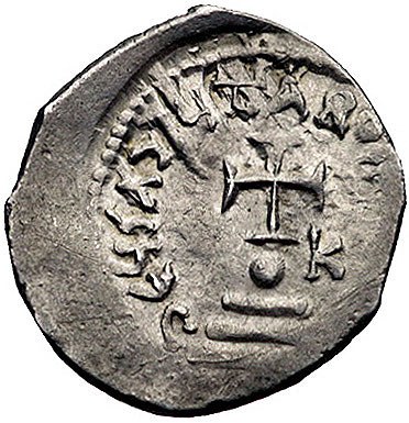 Herakliusz 610-641, heksagram, Aw: Herakliusz i Herakliusz Konstantyn siedzący na wprost na tronie i napis w otoku, Rw: Krzyż na kuli i na postumencie, w otoku napis, w polu K, Sear 798A, 6.52 g