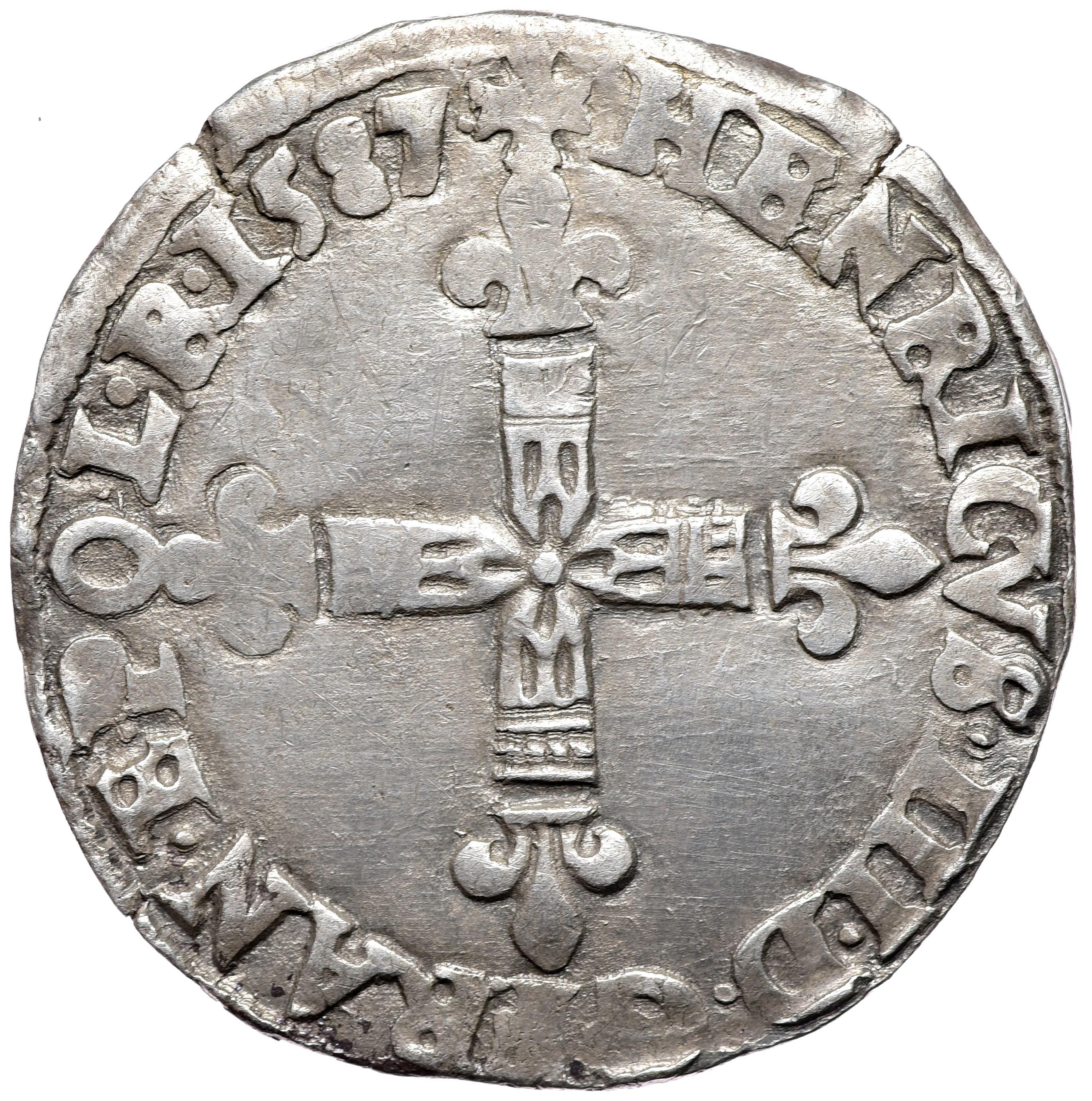 Bardzo ładna moneta Henryka Walezego, który dożywotnio używał tytułu króla Polski.