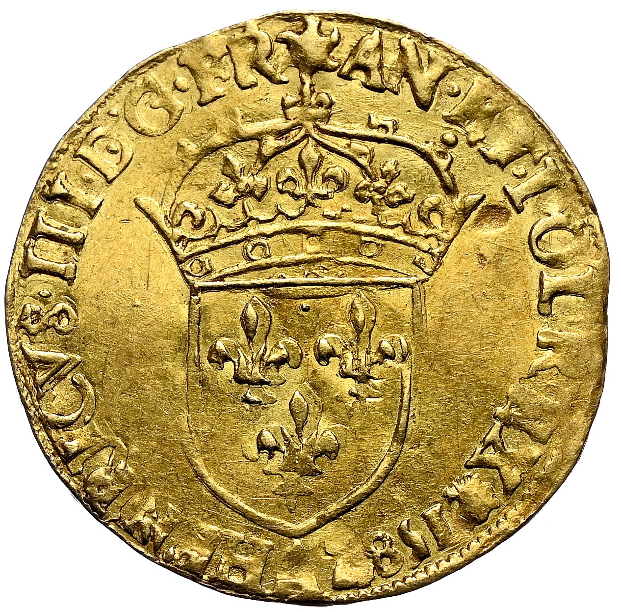 Świetnej kondycji i pięknej prezencji dukat (ecu d'or) Henryka Walezego z mennicy w Paryżu.