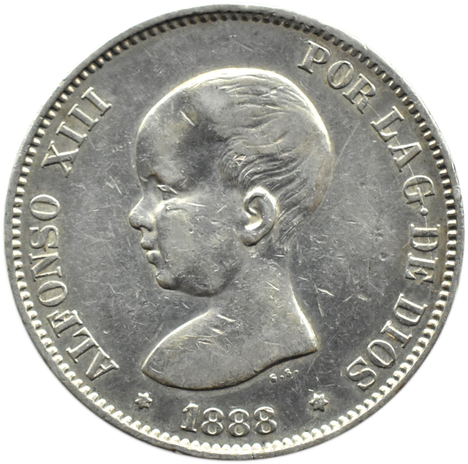Hiszpania, Alfonso XIII (1886-1931), 5 peset 1888 M, mennica Madryt