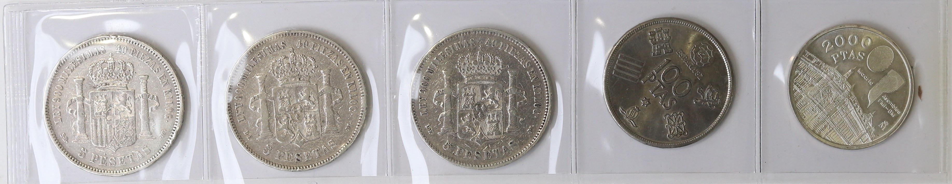 W zestawie srebrne 5 pesetas i 2000 ptas z 1994 roku.