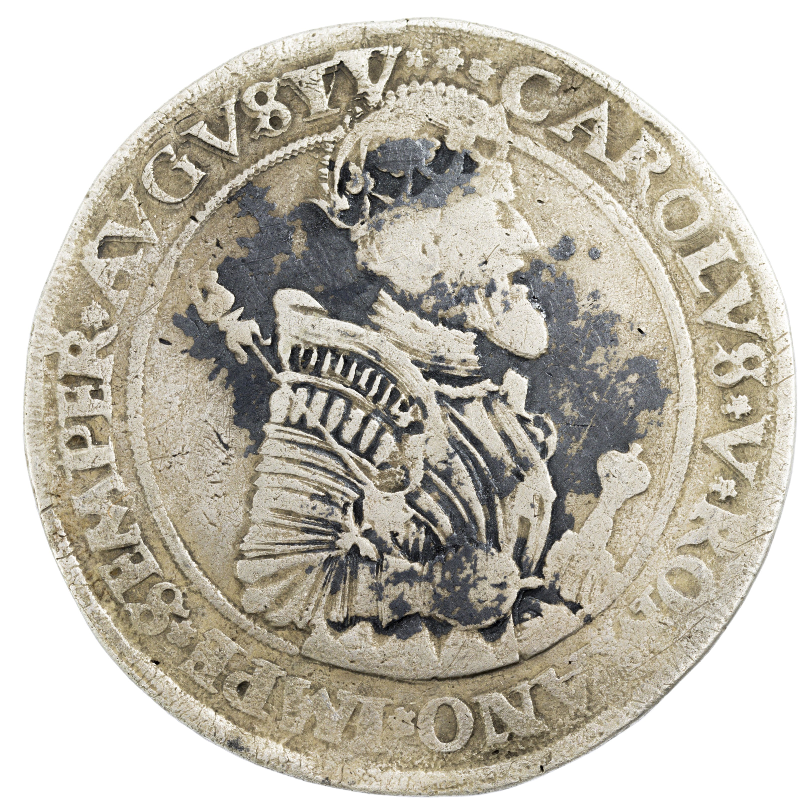 Tytulatura Karola V (1519-1556). Nieregularna patyna.