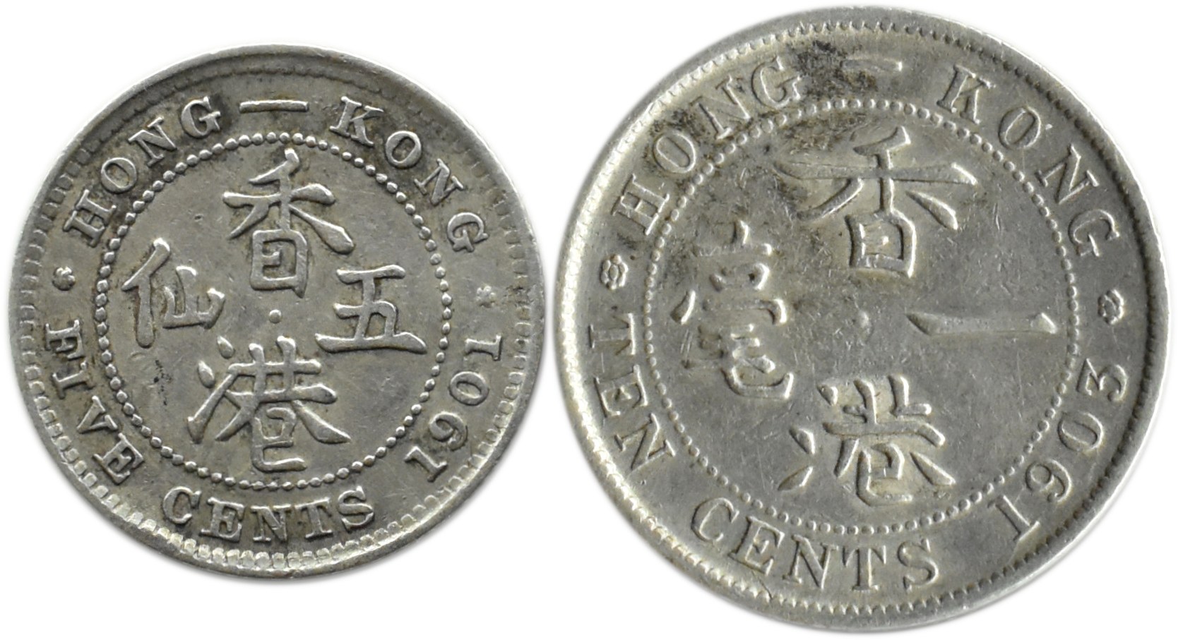 Wielka Brytania/Hong-Kong, Wiktoria/Edward VII, lot 5-10 centów 1901-1903