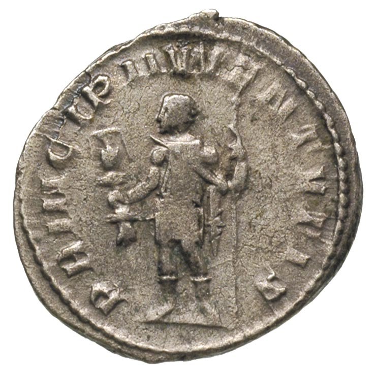 CESARSTWO RZYMSKIE, Hostylian 251, antoninian, Rzym, Aw: Popiersie cesarza w prawo, Rw: Cesarz ze sztandarem i włócznią stojący w lewo, RIC 182, bardzo rzadki