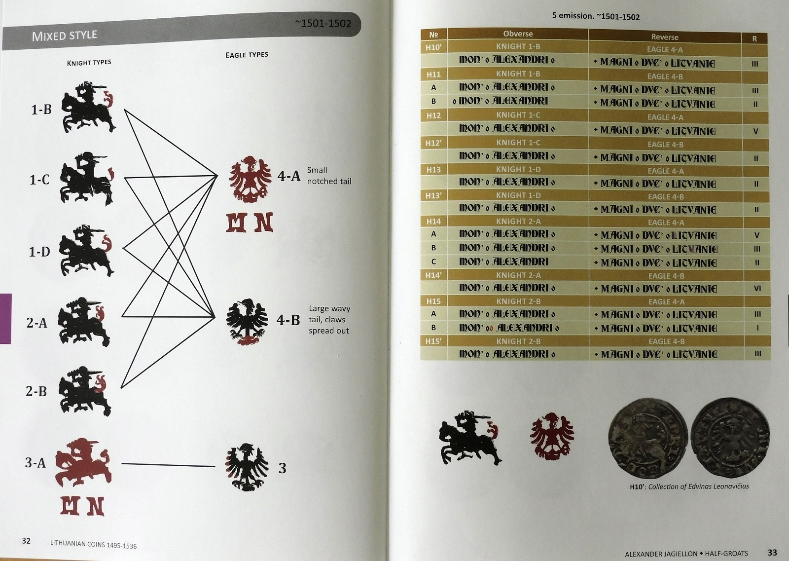 Jeden z najlepszych, a w naszej ocenie najlepszy, katalog monet litewskich okresu 1495-1536. Bardzo prosta i czytelna struktura od roku wybicia, poprzez występujące typy stempli Orła i Pogoni (ze wskazaniem różnic między stemplami), połączenia tych stempli, odmiany napisowe, warianty interpunkcyjne, błędy. Dla każdej pozycji katalogowej określono stopień rzadkości. Bardzo duża ilość fotografii. Słowem przystępne, czytelne, kompletne, bardzo szczegółowe opracowanie zarówno dla początkujących, jak i bardzo zaawansowanych kolekcjonerów.