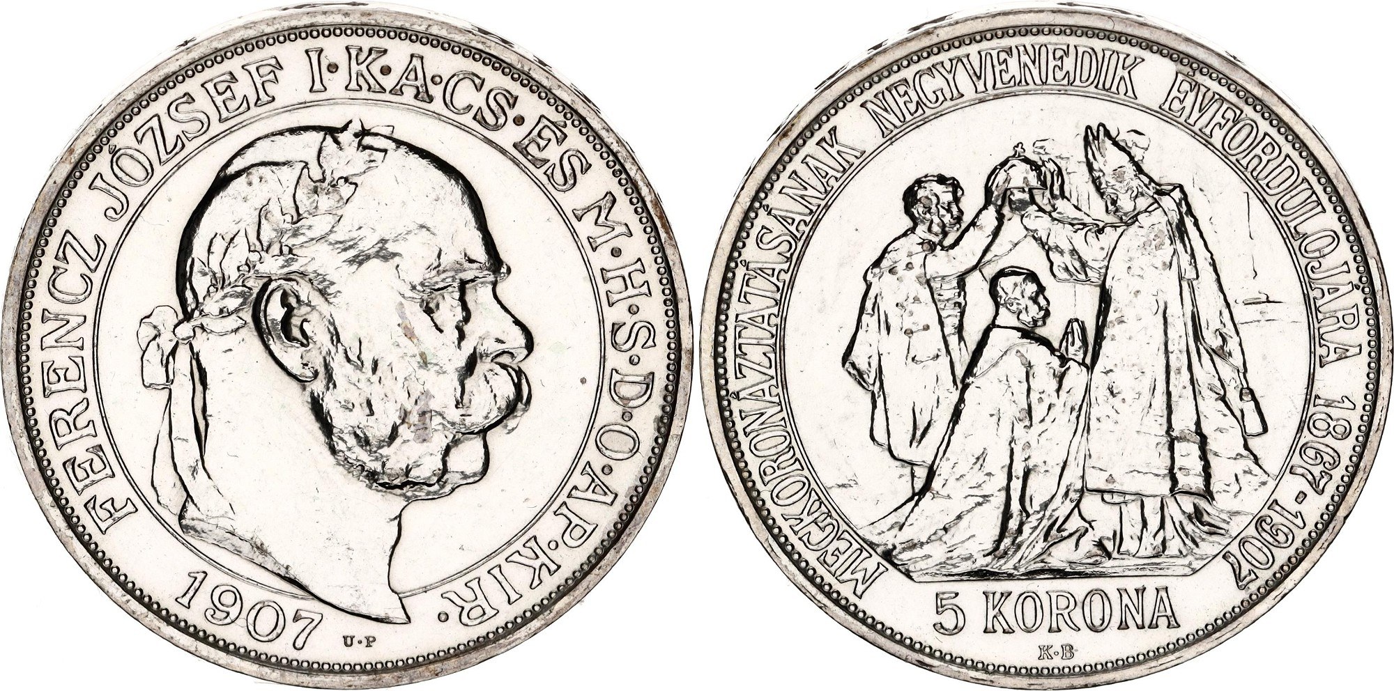 KM# 489, ÉH# 1493, H# 2214, Adamo# K7.1, N# 15759; Silver., Proof; Franz Joseph I; 40th Anniversary of the Coronation of Franz Joseph I as King of Hungary