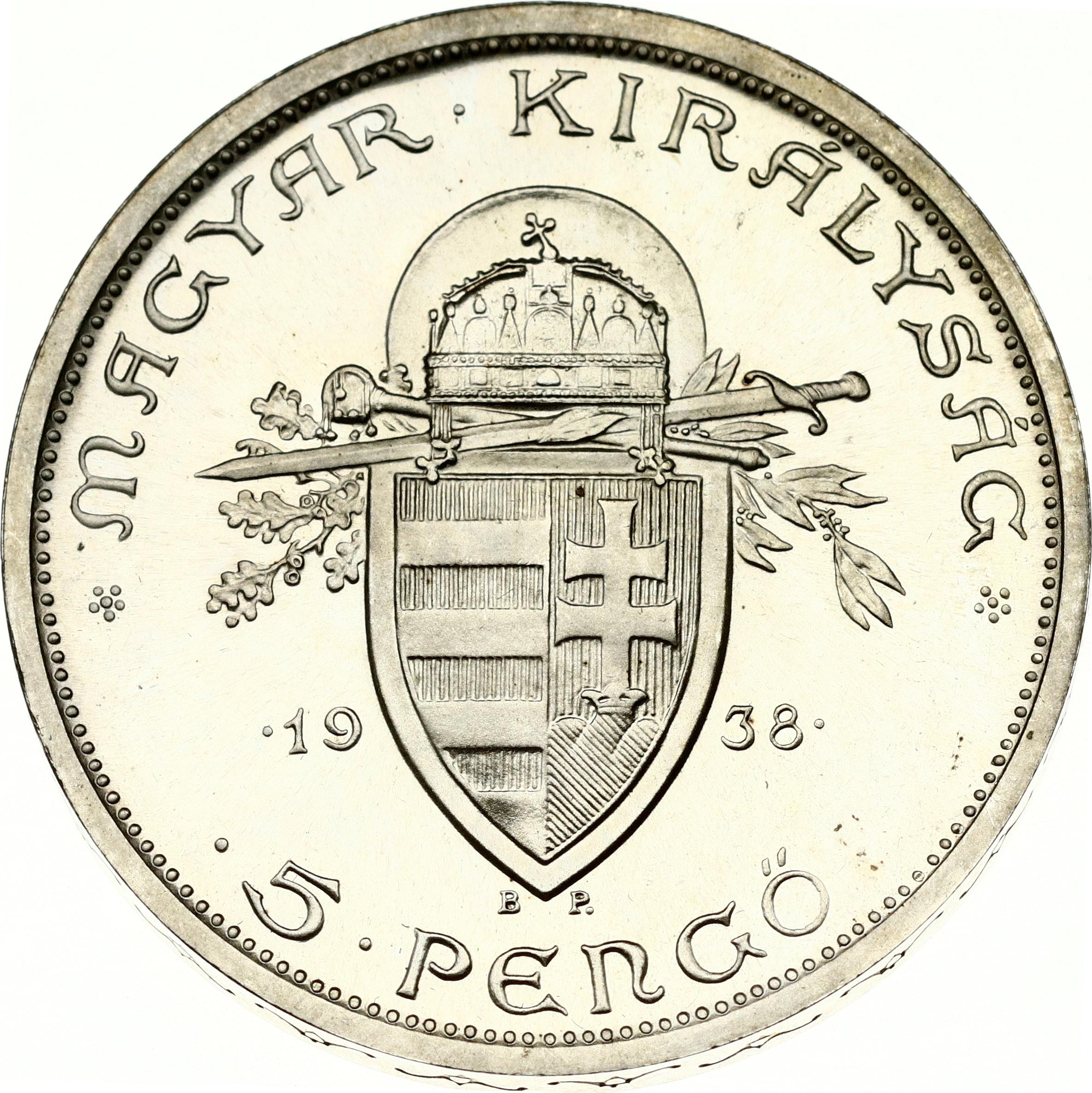 Hungary. 5 Pengo 1938 BP Death of St. Stephan 900 years. Silver 25.25 g. KM 516.