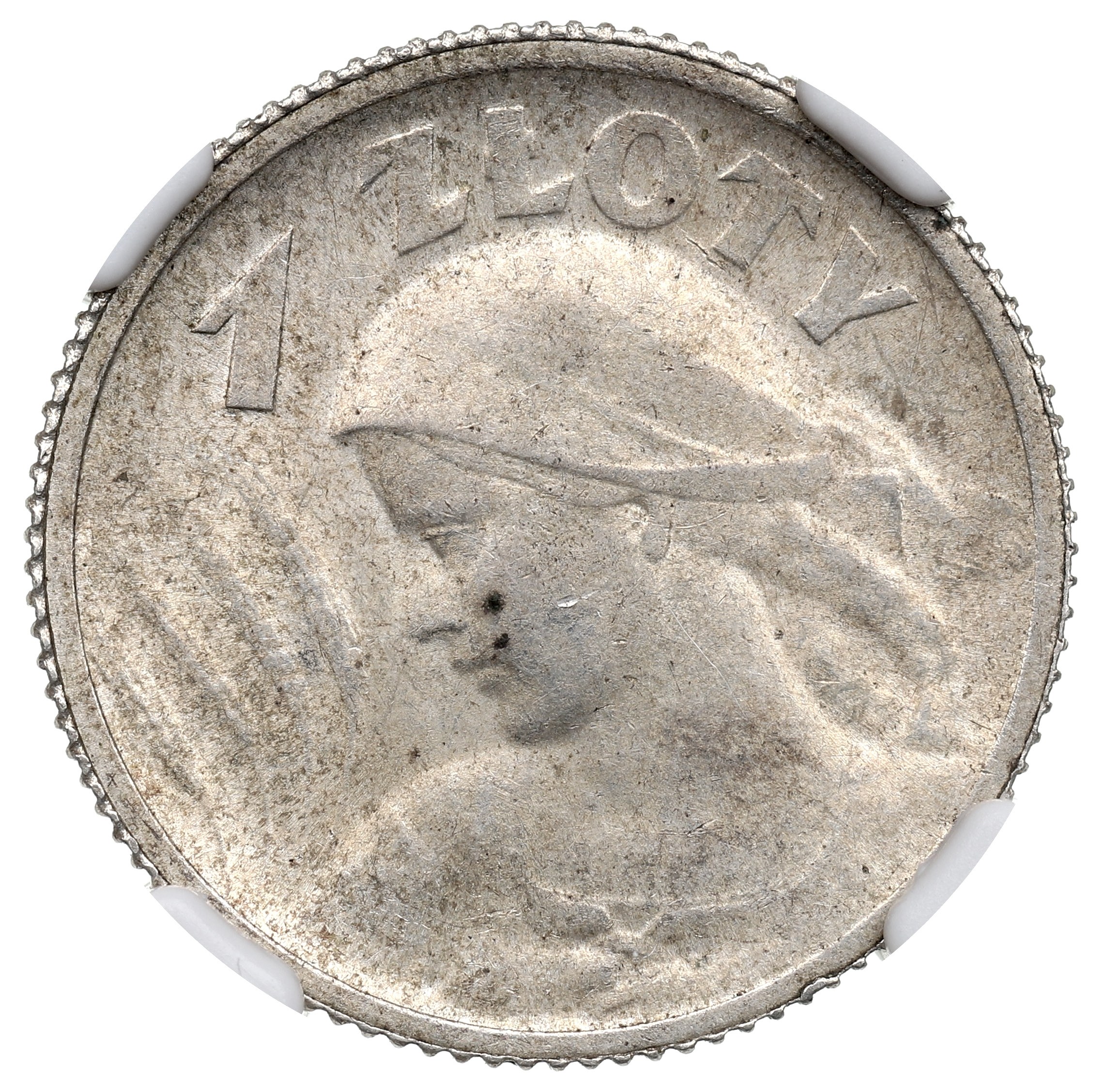 Rewers: popiersie dziewczyny w chuście, przed nią kłosy zboża, wyżej napis 1 ZŁOTY.