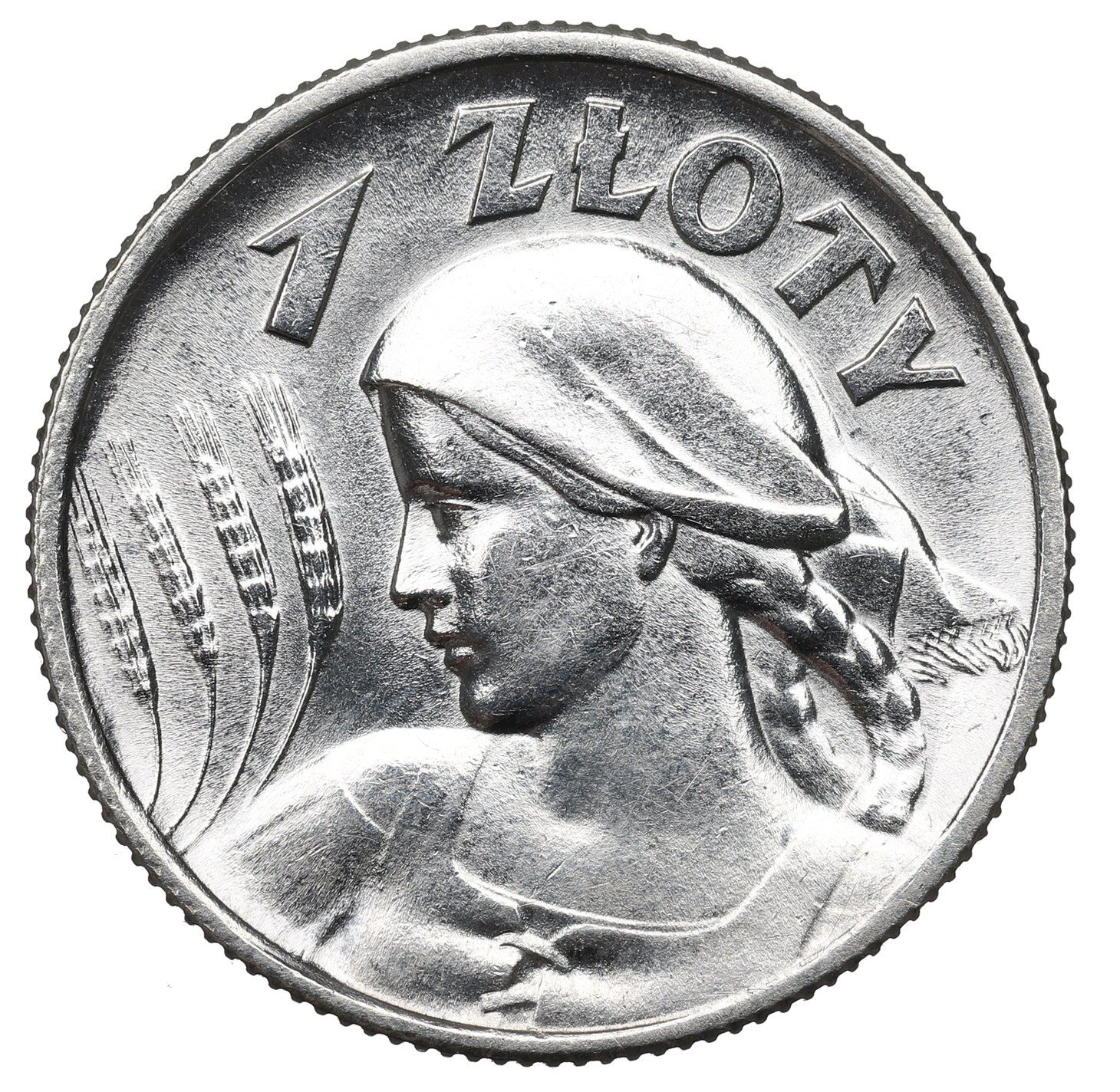 Rewers: popiersie dziewczyny w chuście, przed nią kłosy zboża, wyżej napis 1 ZŁOTY.