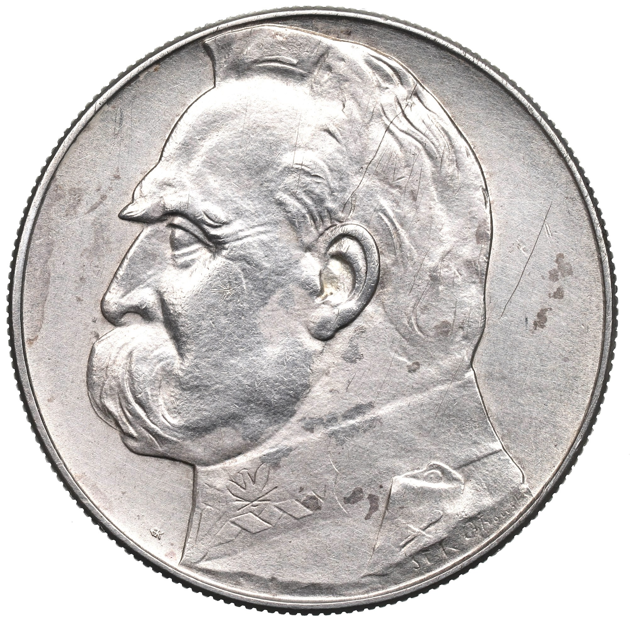 Nominał wprowadzony reformą z 11 stycznia 1924 roku bity w tym wzorze od 1934 roku (wprowadzony do obiegu w 67 urodziny marszałka). Zgodnie z rozporządzeniem Prezydenta RP z 27 sierpnia 1932 roku monetami tymi można było spłacać zobowiązania do kwoty maksymalnie 1 000 złotych. Moneta pozostająca w obiegu do listopada 1939 roku, wycofana na mocy rozporządzenia GG.