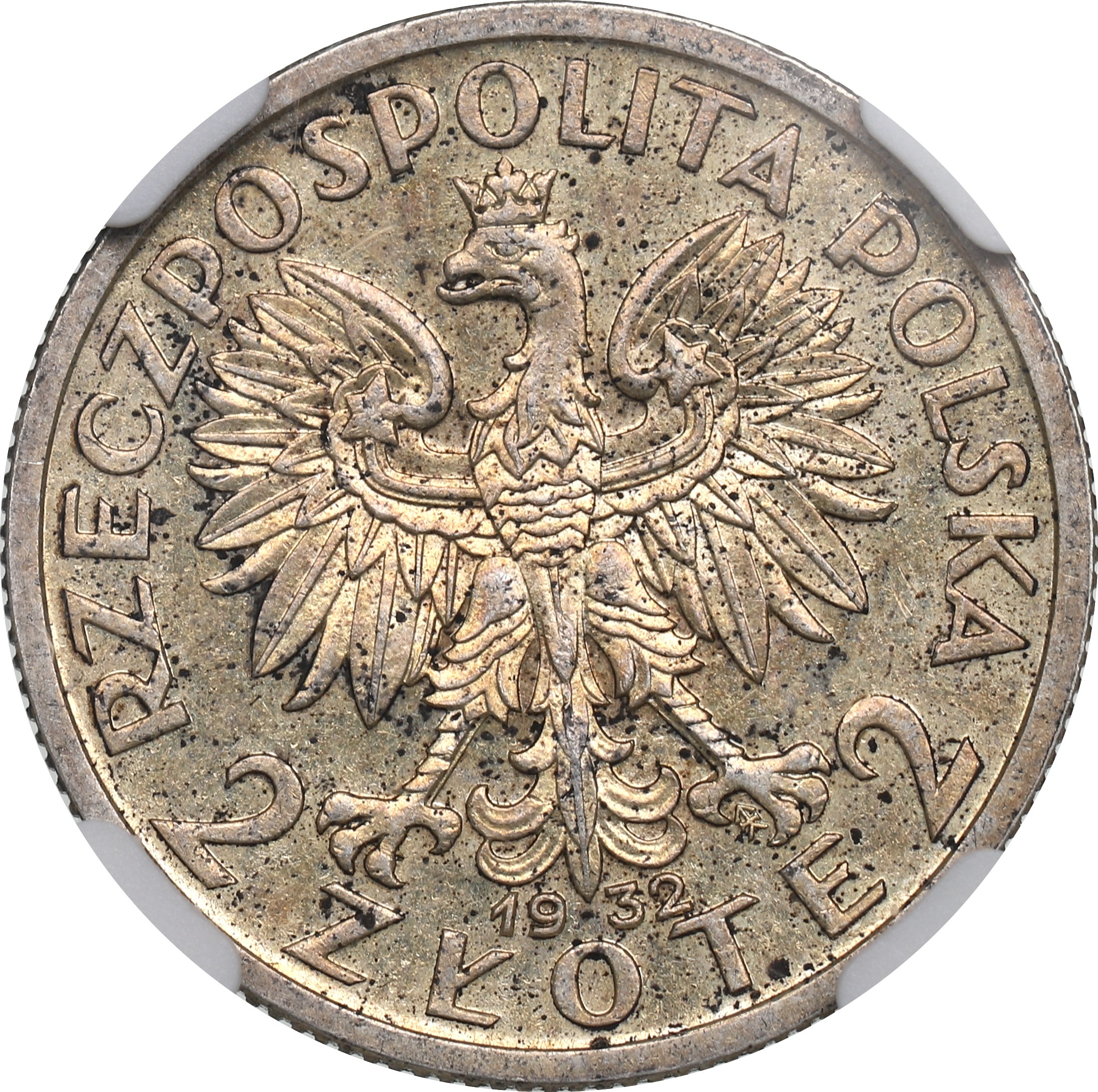 Awers: orzeł w koronie, w otoku legenda: RZECZPOSPOLITA POLSKA 2 ZŁOTE 2, pod ogonem orła rok. Pod łapą orła herb Kościesza – znak Mennicy Państwowej w Warszawie.