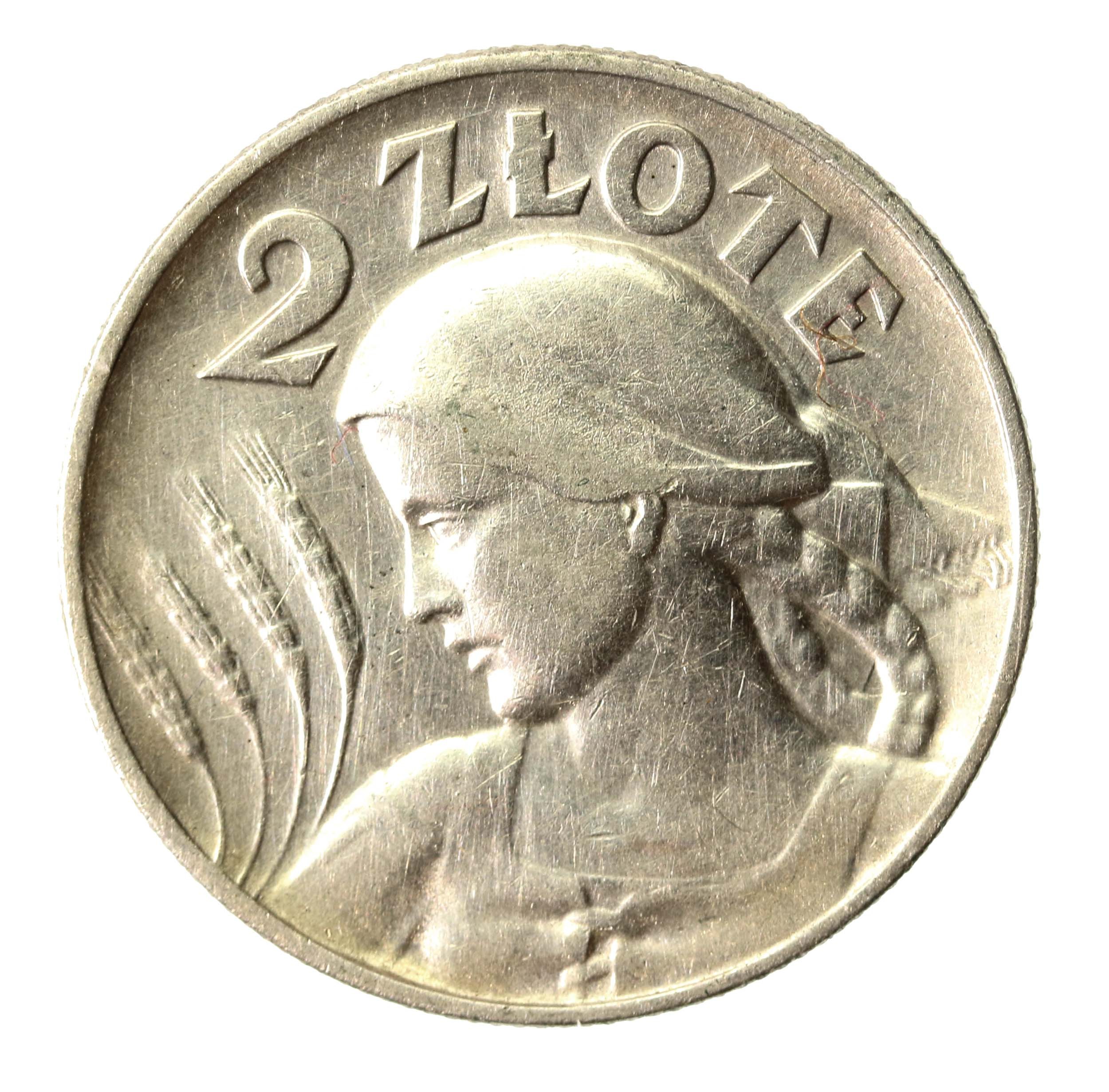 II RP, 2 złote 1925 bez kropki, Filadelfia, Żniwiarka. Stan zachowania: 2-/2. Dobrze zachowana moneta. Literatura: Parchimowicz 109e
