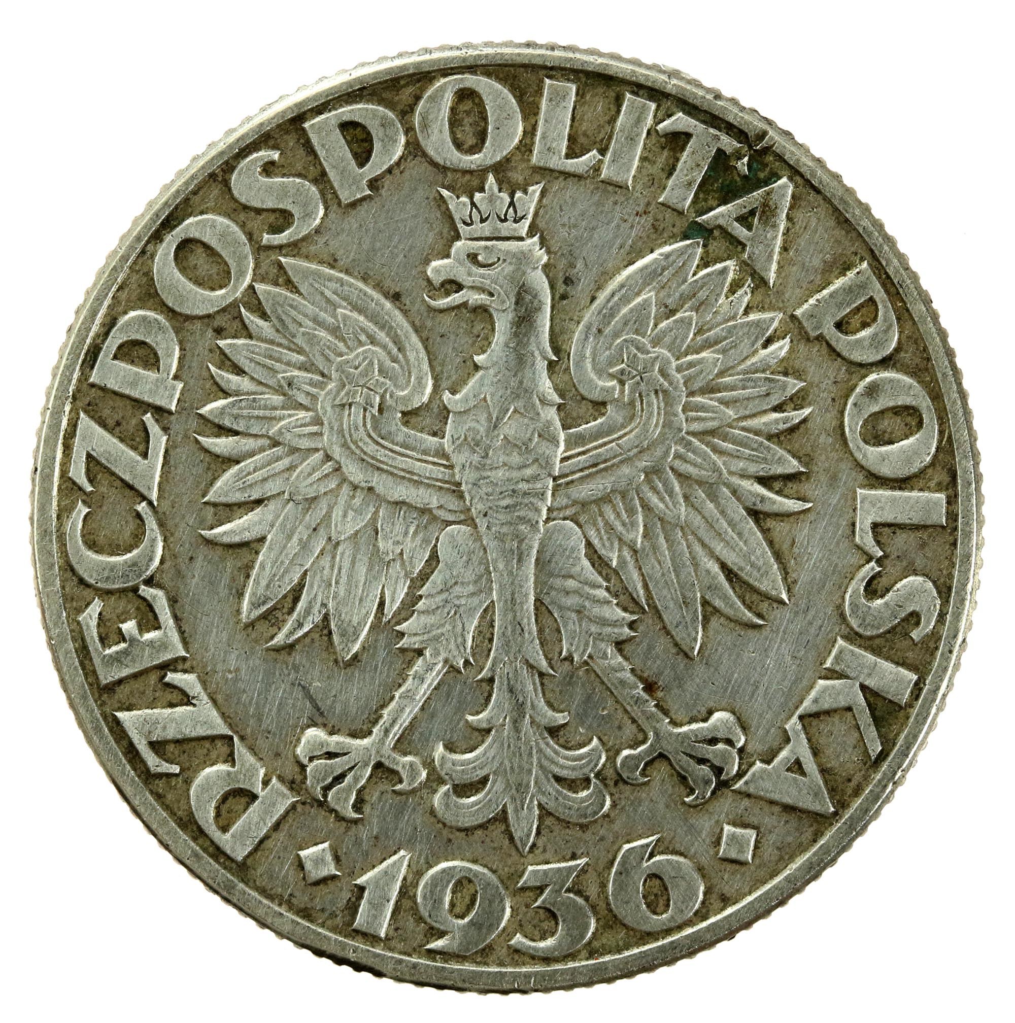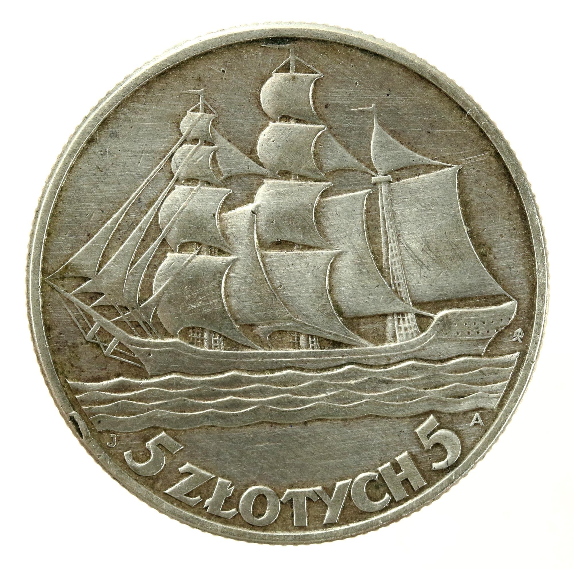 II RP, 5 złotych 1936, Żaglowiec. Stan zachowania 3+. Dobrze zachowana moneta. Literatura: Parchimowicz 119