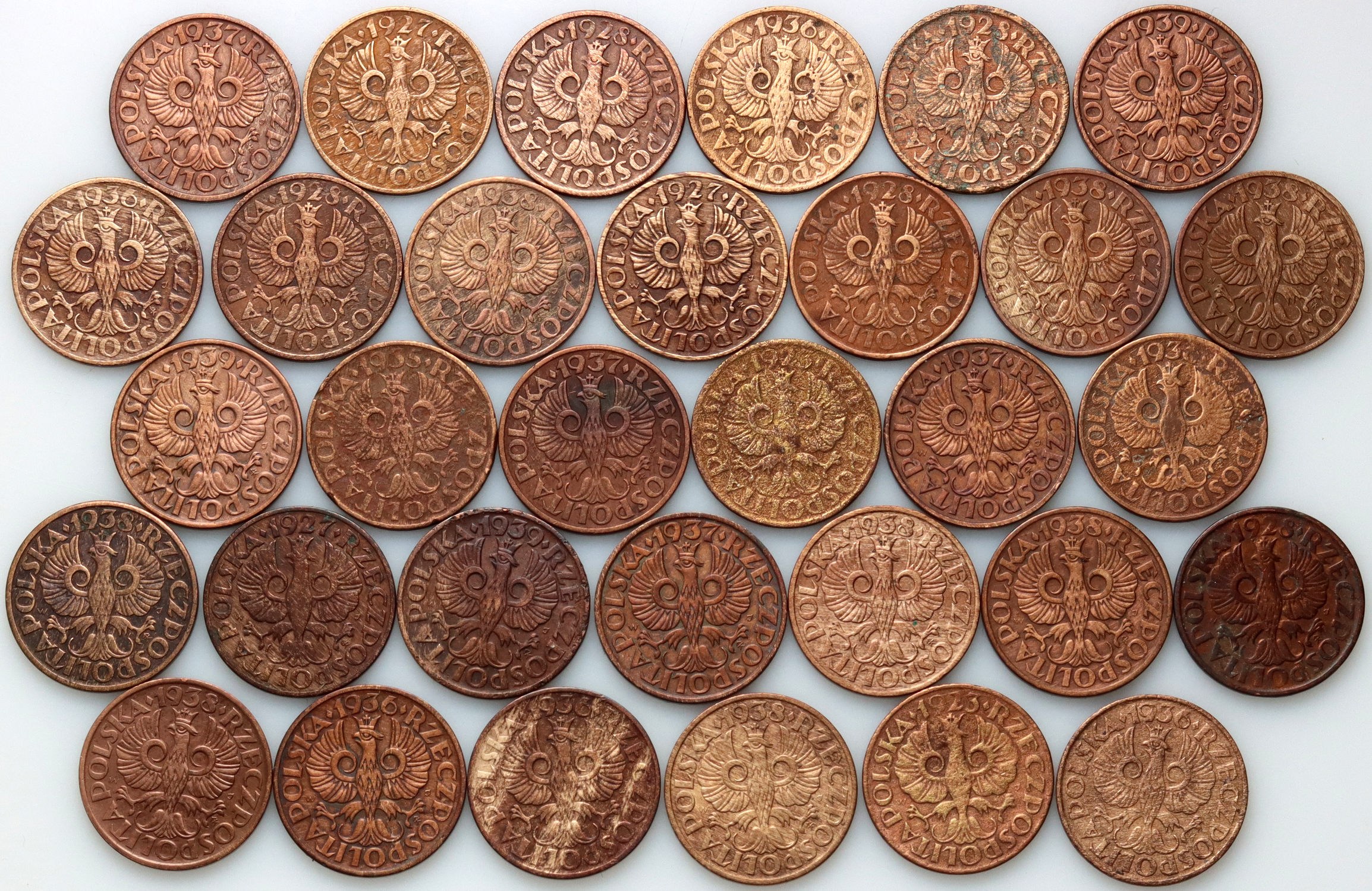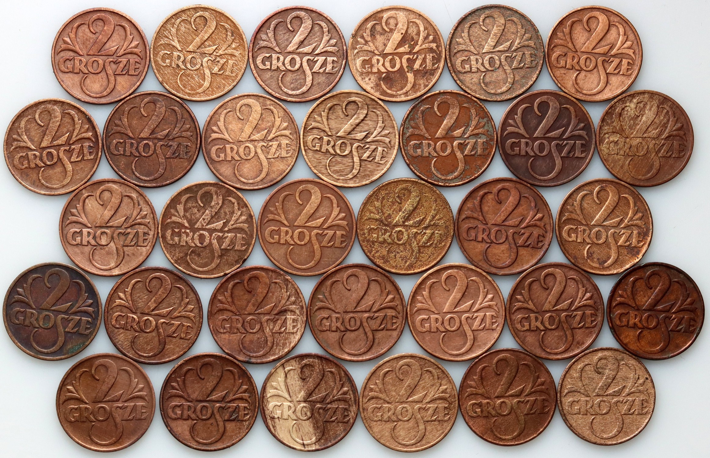 II RP, zestaw monet 2 grosze z lat 1923-1939, (32 sztuki)