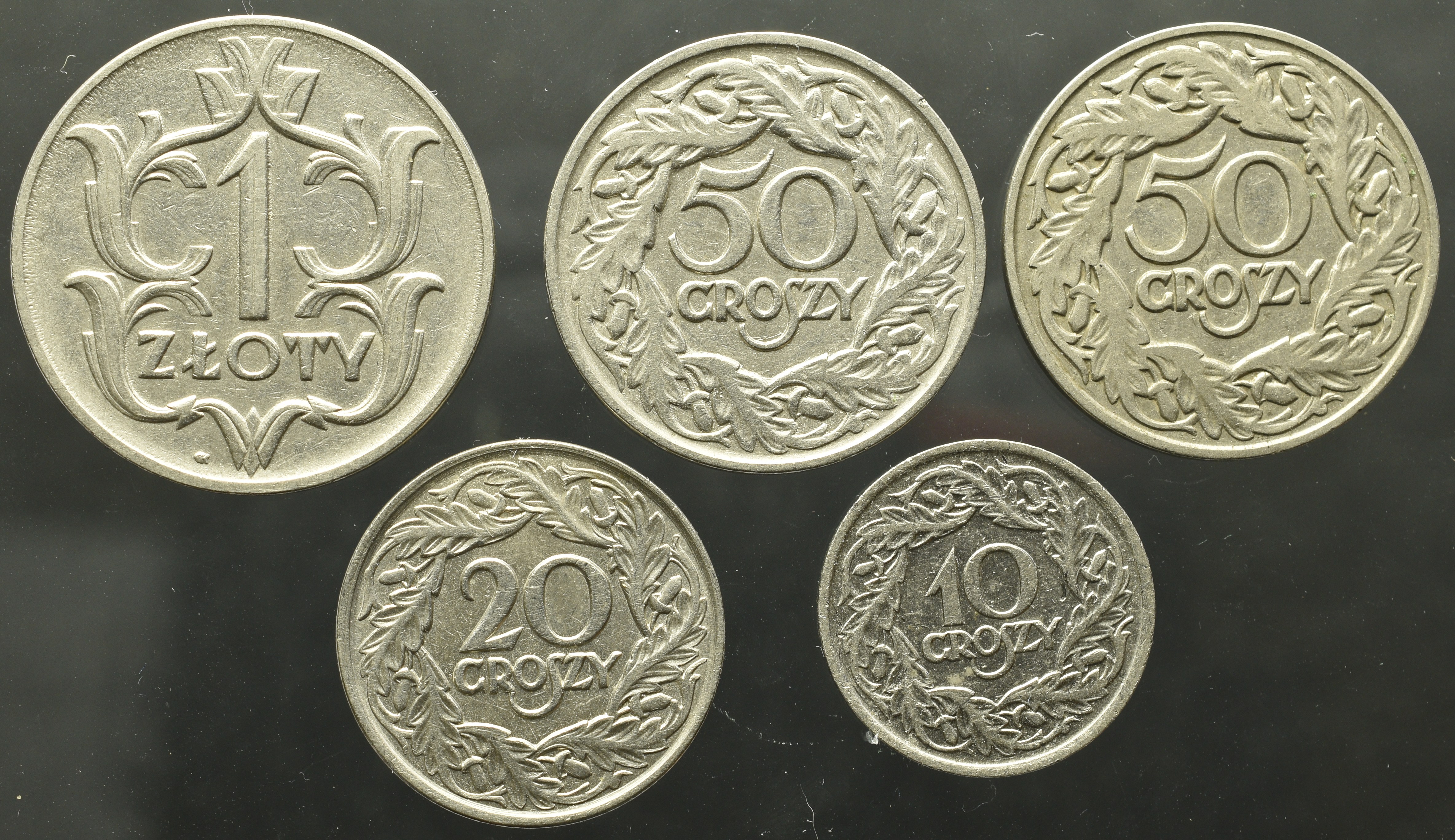 II Rzeczpospolita, Zestaw 10 groszy-1 złoty (5 egz)