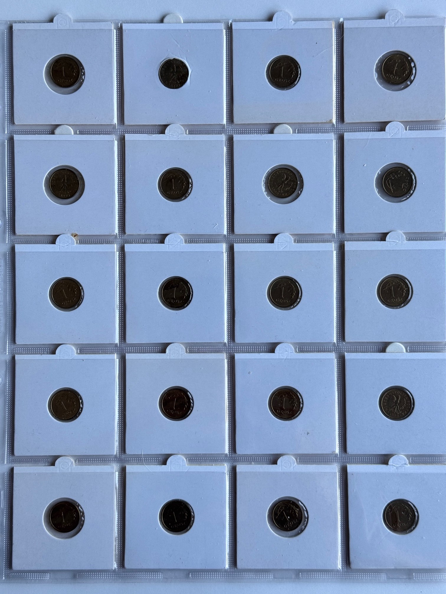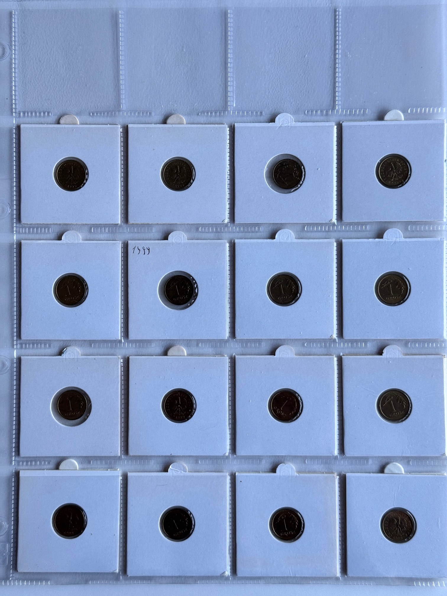 Zetsaw 96 sztuk monet 1 grosz 1999 w holderach.