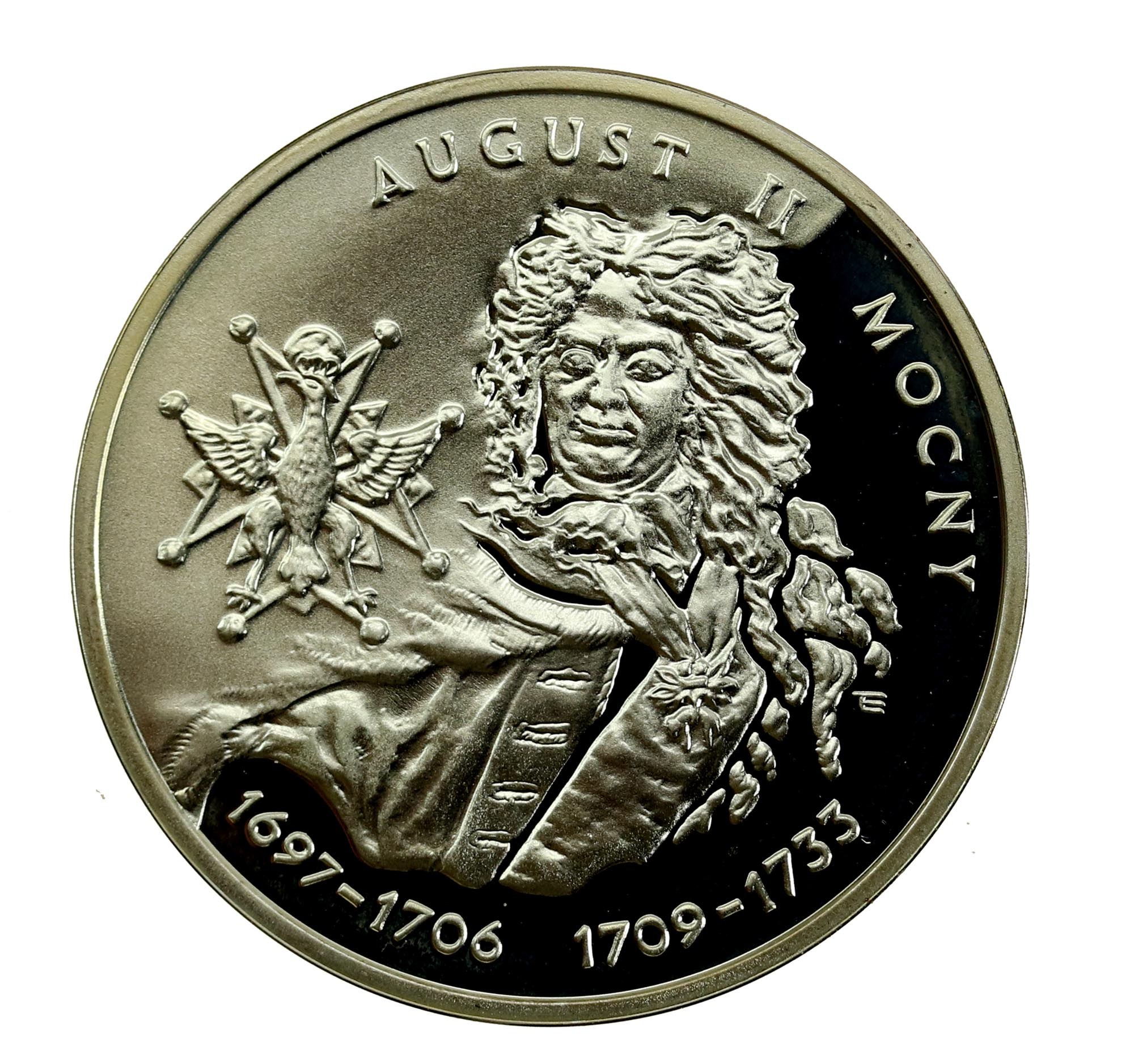 III RP, 10 złotych 2002, August II Mocny. Ag. 925. Stan zachowania L. Literatura: Parchimowicz 867