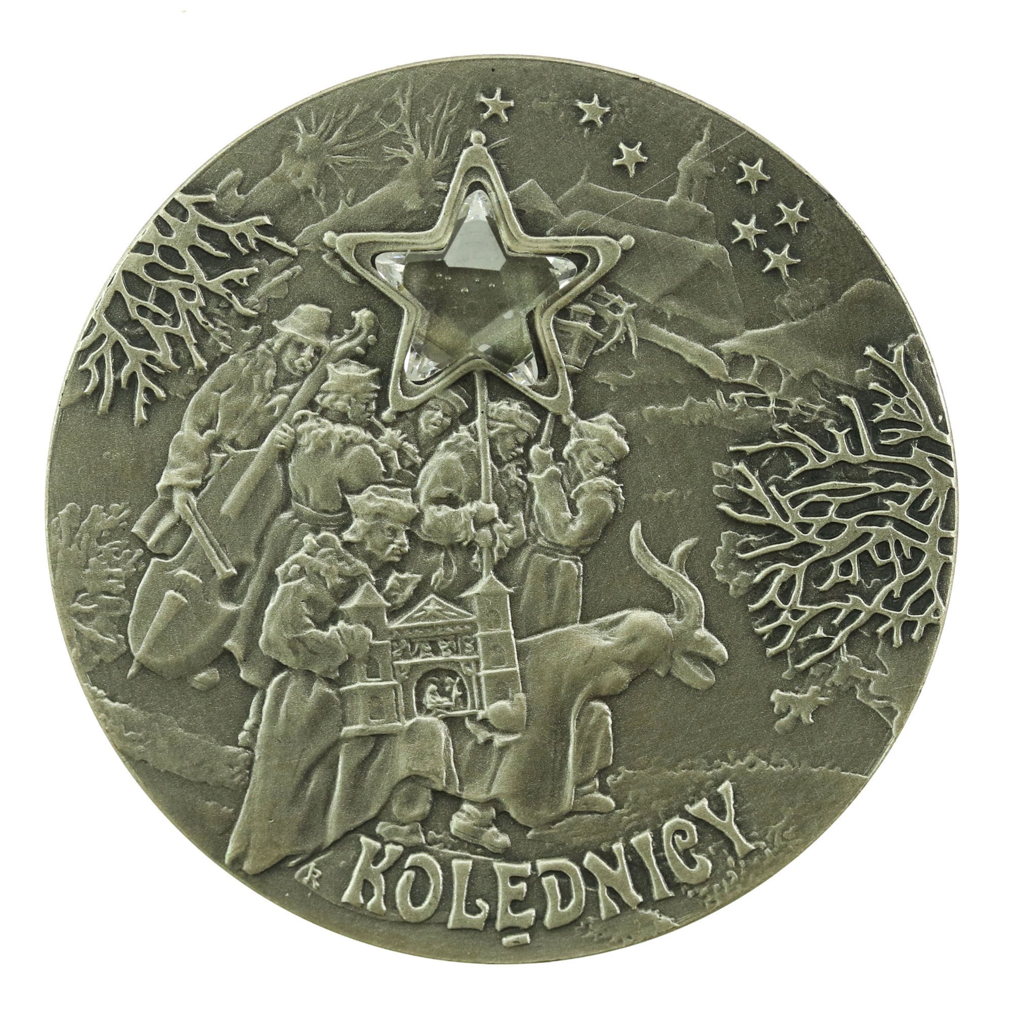 III RP, 20 złotych 2001, Kolędnicy. Oksydowane srebro z wtopioną cyrkonią. Stan zachowania 1. Literatura: Parchimowicz 849
