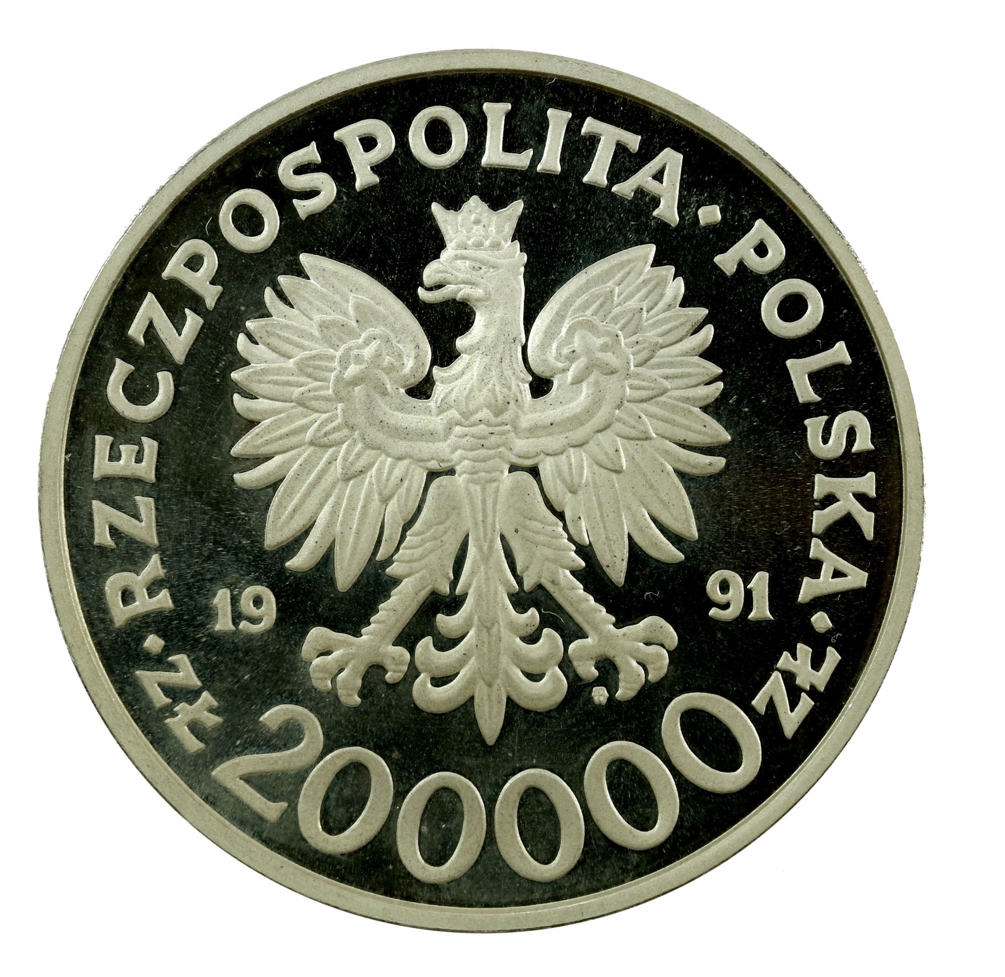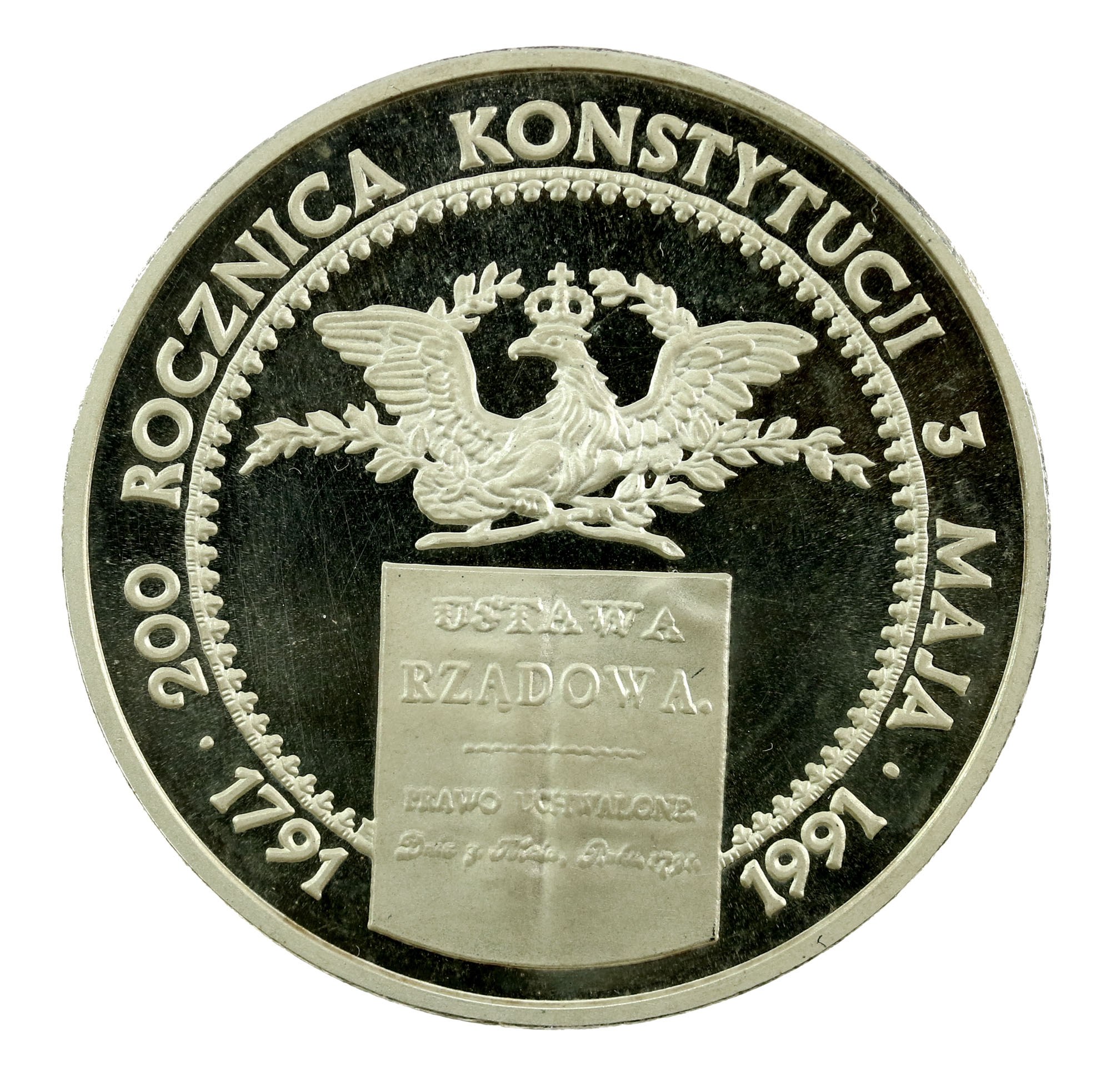 III RP, 200.000 złotych 1991, Konstytucja. Srebro 999, waga 38,9 grama, nakład 100 000 sztuk. Stan zachowania L/L-. Literatura: Parchimowicz 641