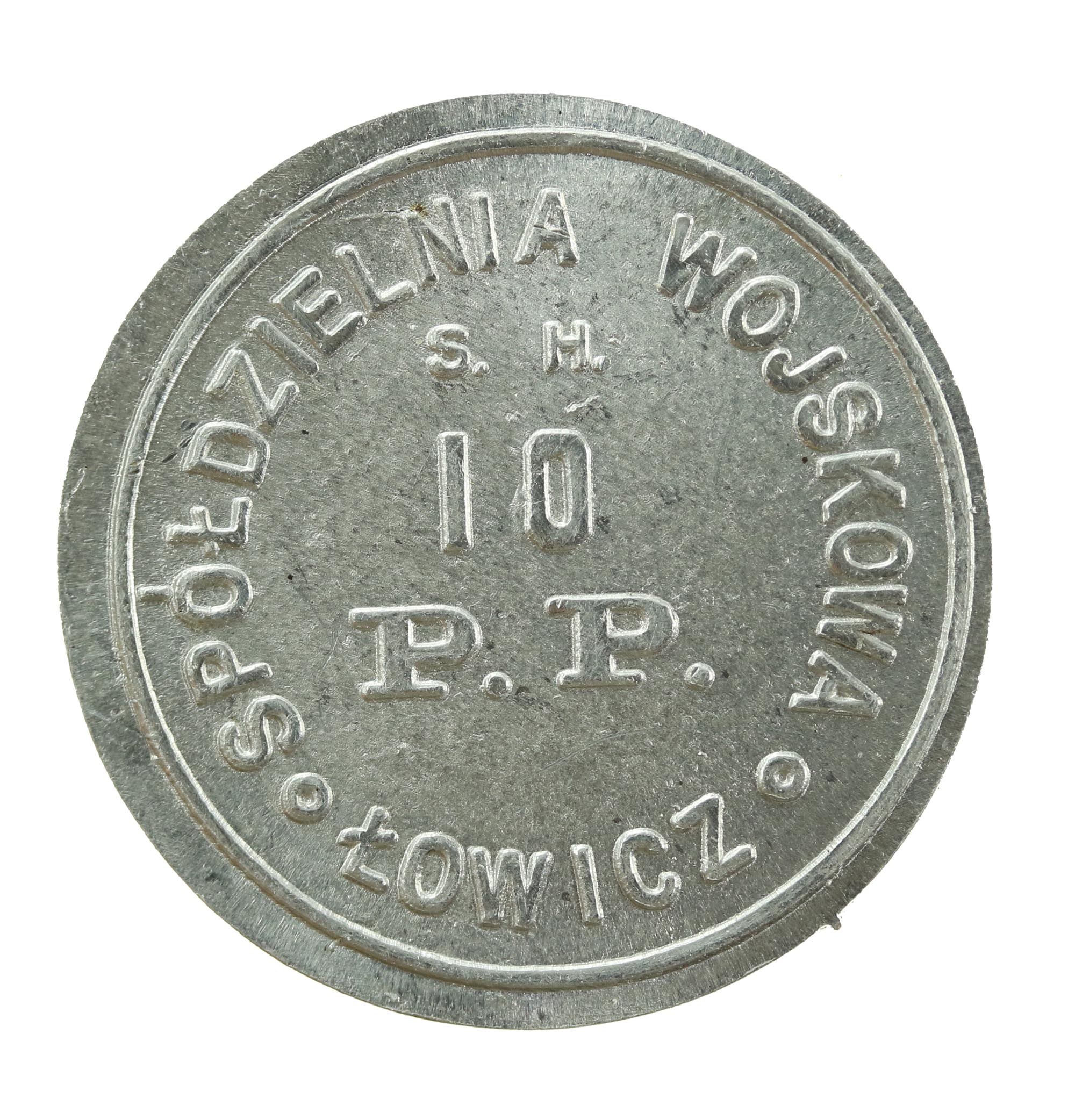 III RP - żeton Stowarzyszenie Historyczne 10 Pułku Piechoty w Łowiczu. Żeton pamiątkowy wydany przez Stowarzyszenie Historyczne (litery SH nad "10") w Łowiczu. Stan zachowania 1/1-.
