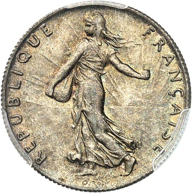 Av. REPUBLIQUE FRANÇAISE. La Semeuse à gauche, avec le soleil levant, marchant et semant à contre-vent ; signature O. ROTY.