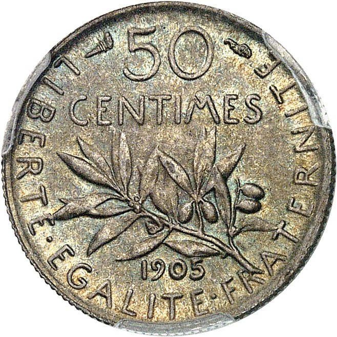 IIIe République (1870-1940). 50 centimes Semeuse 1905, Paris. PCGS MS66 (51870710).