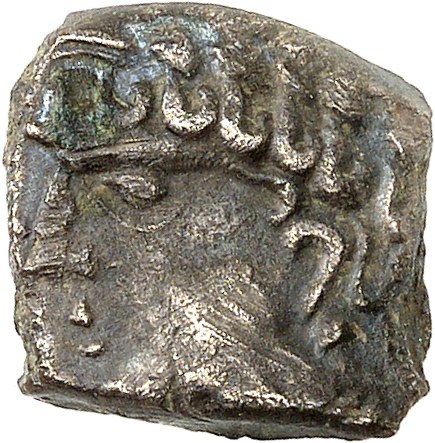 Av. Tête à gauche, avec l’œil de face, la chevelure en deux rangées de boucles en S.