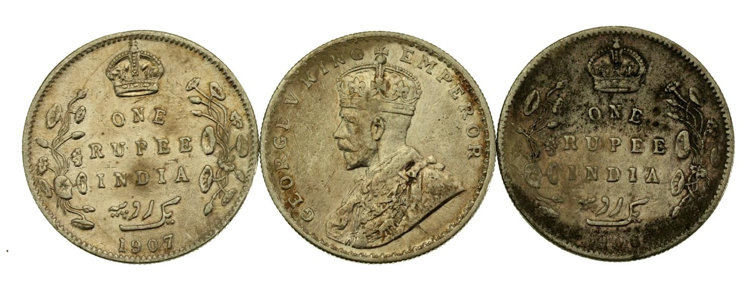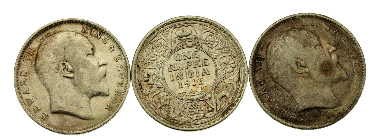 Indie brytyjskie, zestaw 3 x 1 rupia