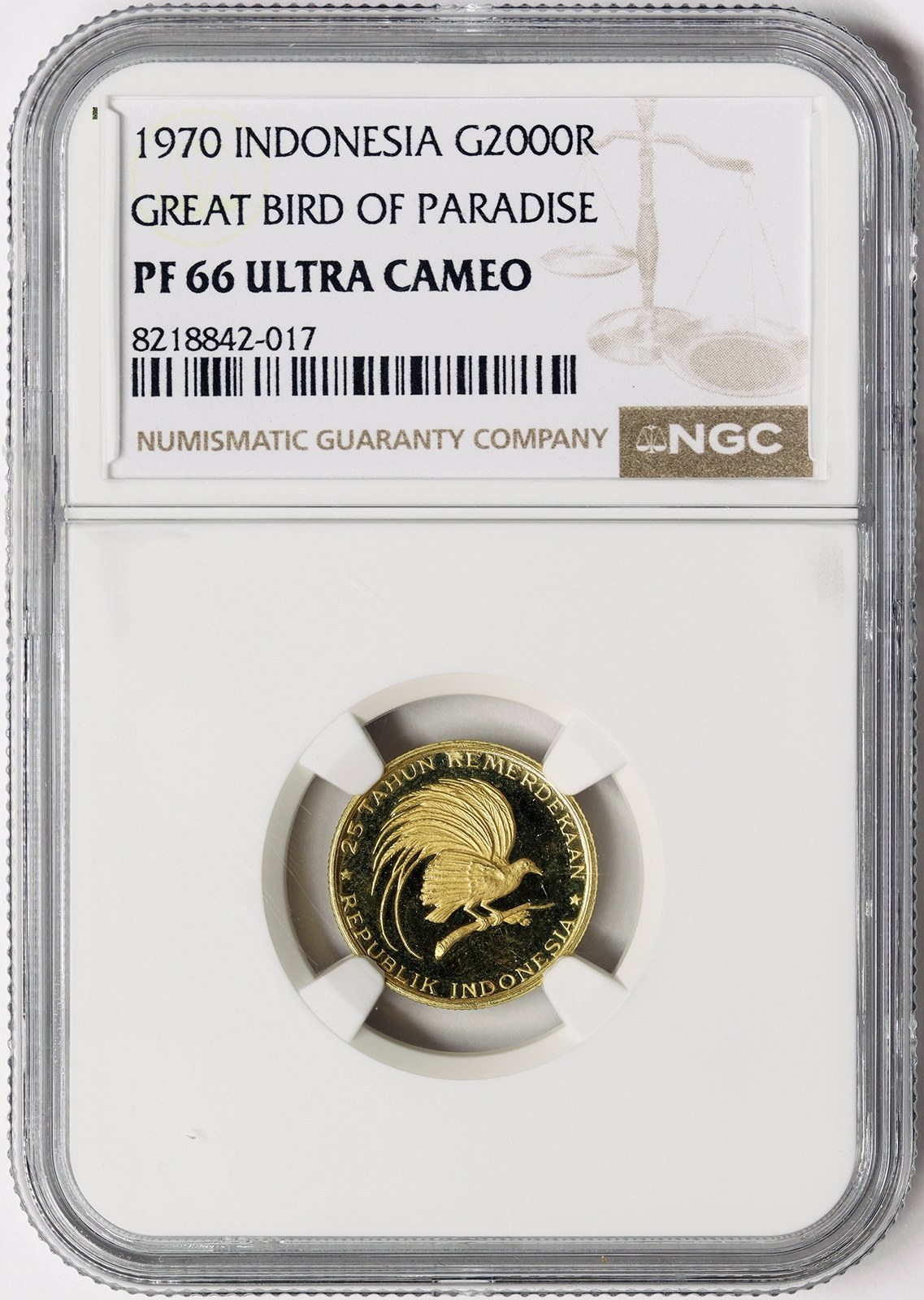 25th Anniversary of Independence. Great Bird of Paradise. Mintage: 2.970 pcs. Au.900 4,93 g
