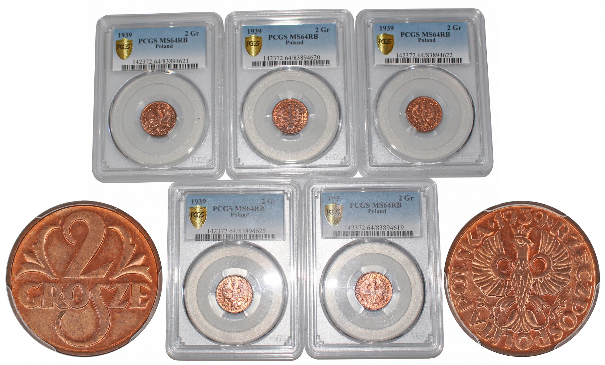Investment set containing 5 coins of the same high grade MS64 RB.
