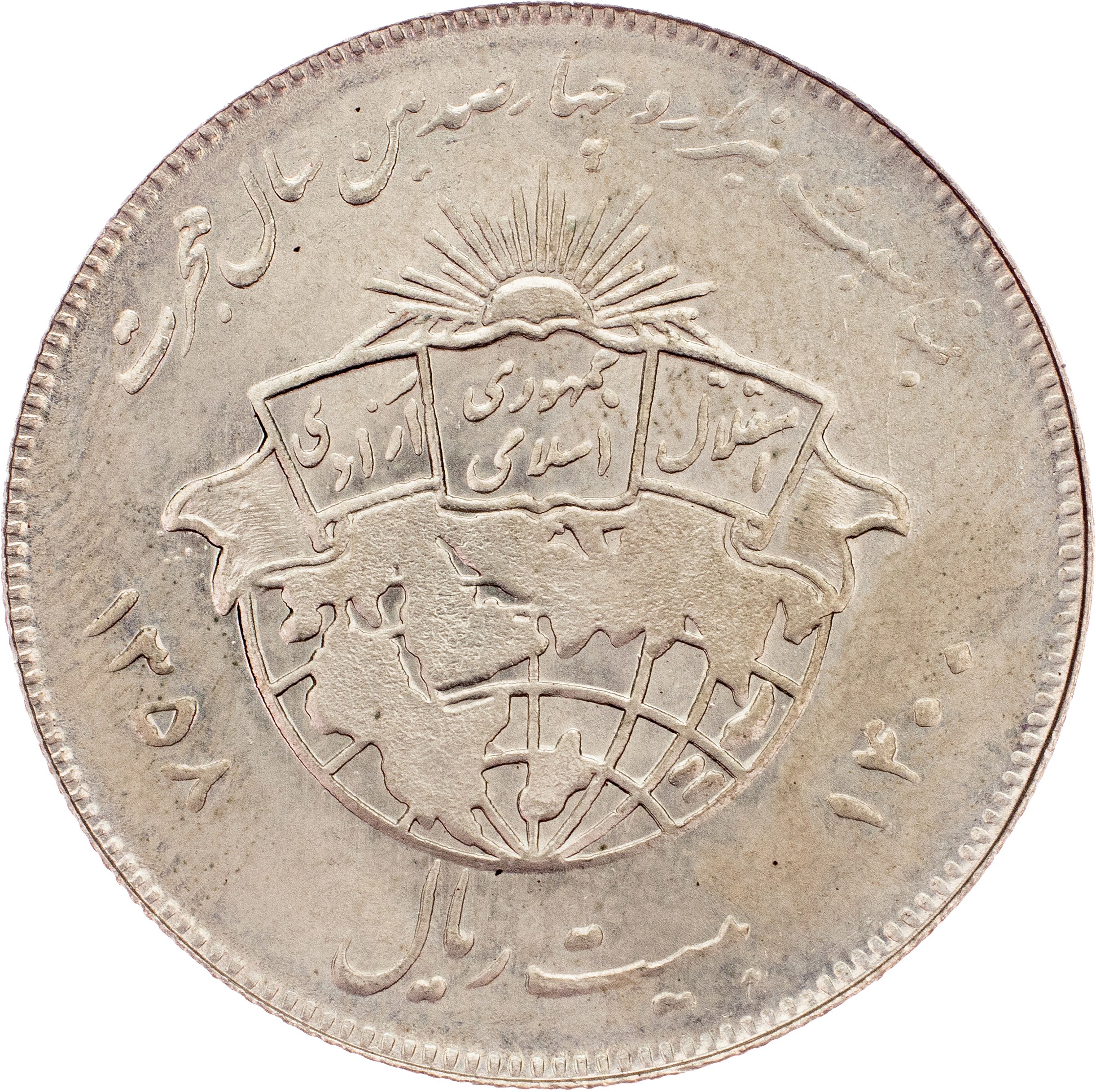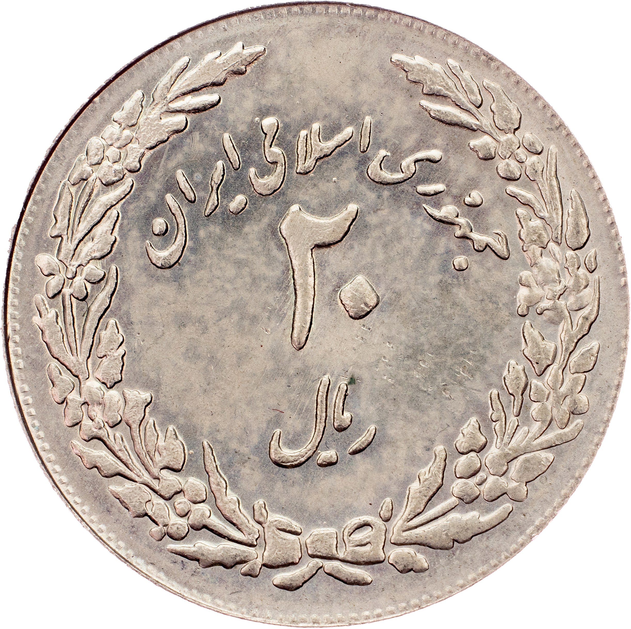 Iran , Iran , 20 Rials 1979, 8,833 g, Copper-nickel, KM# 1244, 1400th Anniversary of Mohammed's Hegira, mint luster, toned; UNC