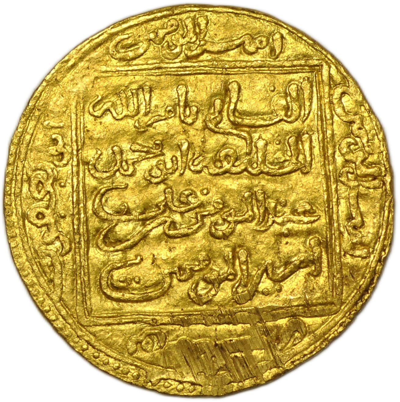 1/2 dinara bez oznaczenia roku i mennicy ( ok 563-580 AH) z tytułem "amir Al-Mu'min"
