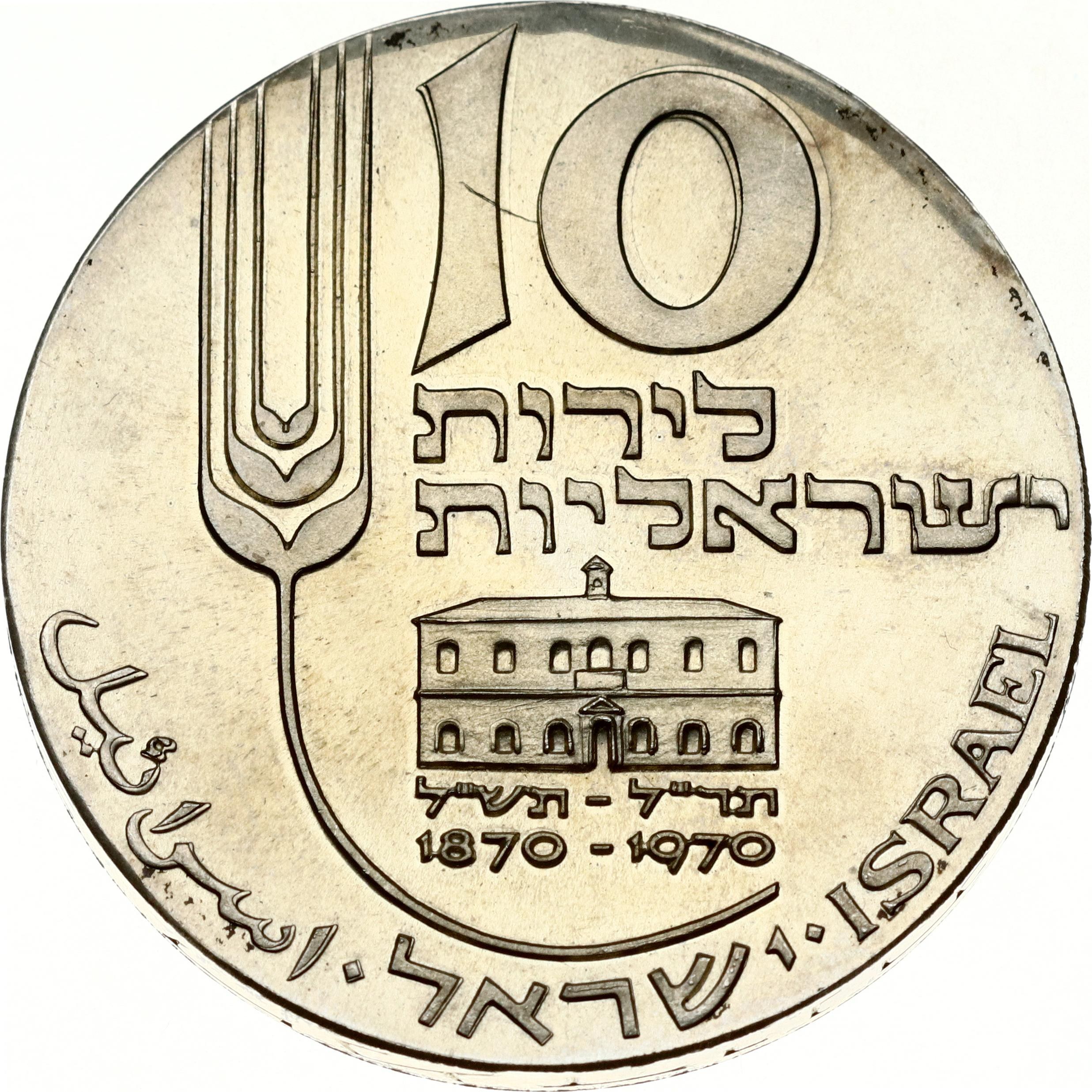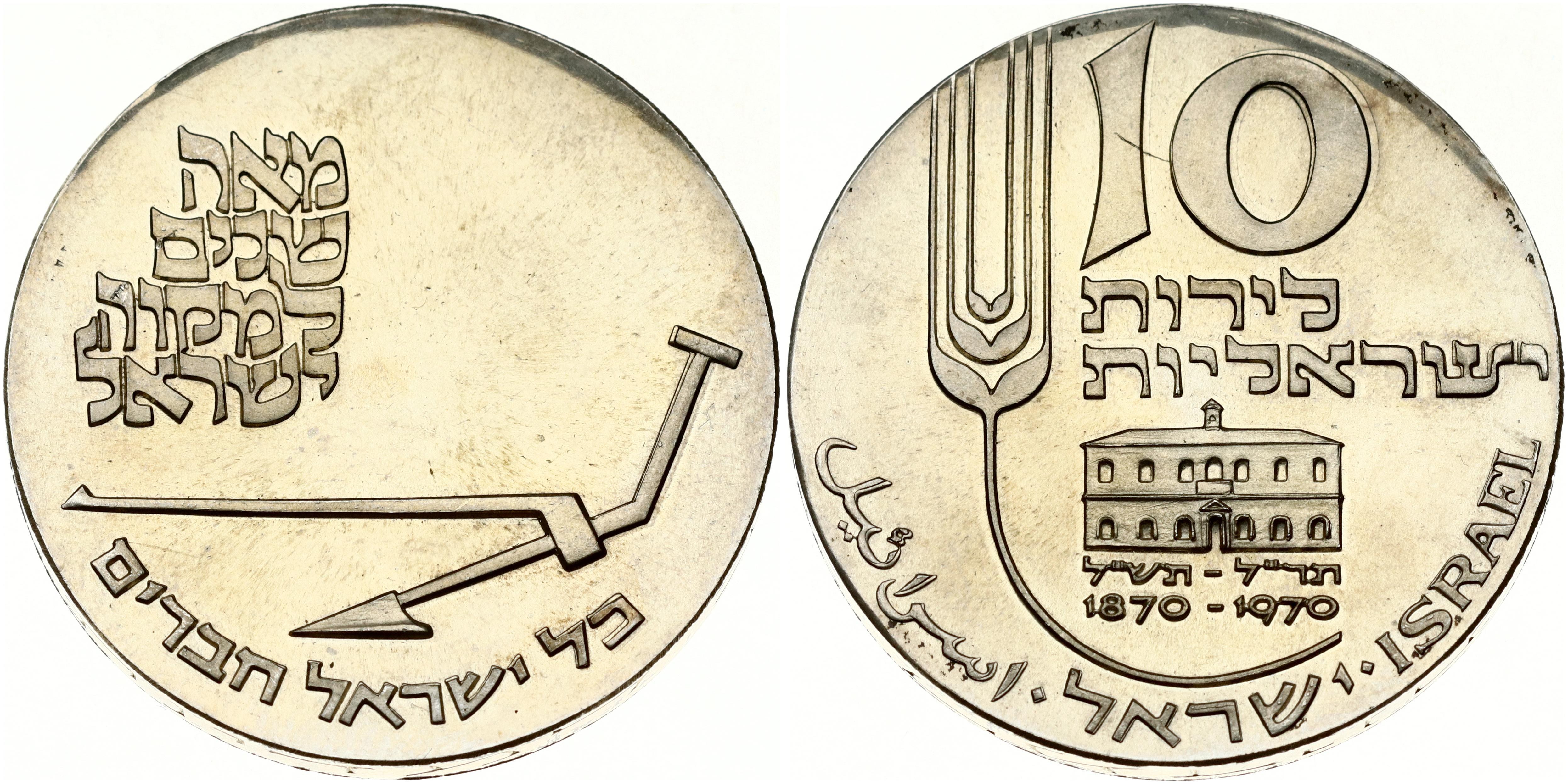 Israel 10 Lirot 5730 (1970) 22nd Anniversary of Independence - Centennial of Mikveh Israel
