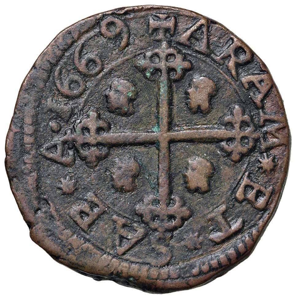 CAGLIARI Carlo II (1665-1700) 3 Cagliaresi 1669 - MIR 91/2 CU (g 12,09) bell'esemplare, di insolita conservazione per questo tipo di moneta