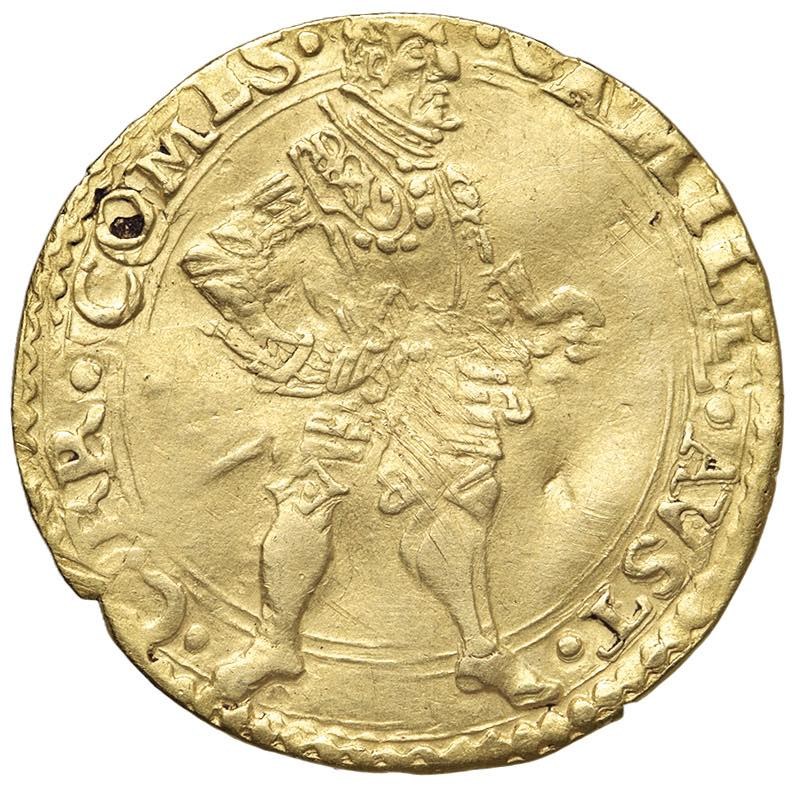 CORREGGIO Camillo d’Austria (1597-1605) Ongaro - MIR 138/1 AU (g 3,40) RRR Ex Kunker, 269, lotto 6289, ex Nomisma 62, lotto 499. Lucidato, da montatura. Si tratta di una di quelle emissioni della fine del Cinquecento quando diverse piccole zecche locali batterono degli ongari, moneta d'oro che circolava ampiamente in Oriente. Tra i pochi ongari di Correggio questo è sicuramente tra i più rari ed originali.