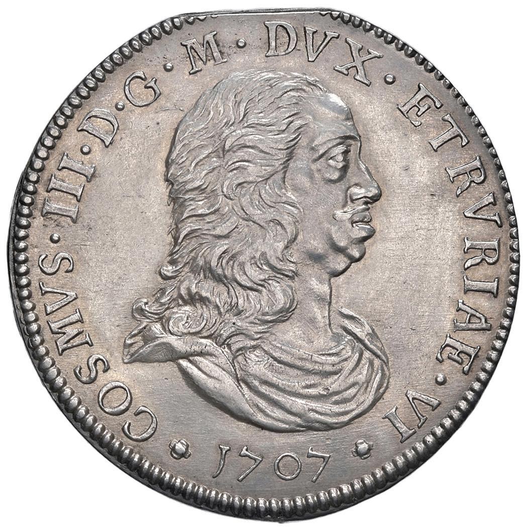 Italian coins - LIVORNO Cosimo III (1670-1723) Tollero 1707 - MIR 65 AG...
