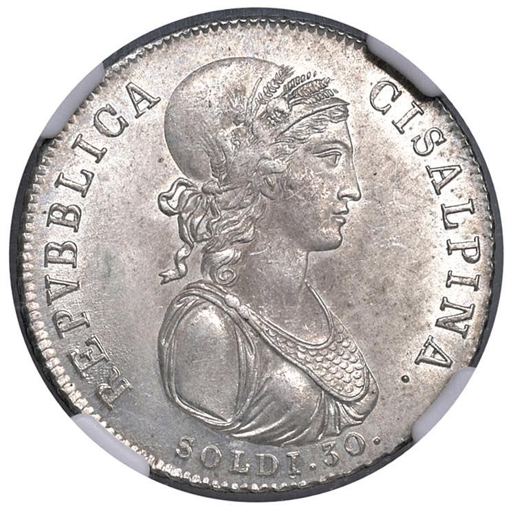 MILANO Repubblica Cisalpina (1800-1802) 30 Soldi A. IX - Gig. 2 AG In slab NGC MS 63 cod. 6635714-004